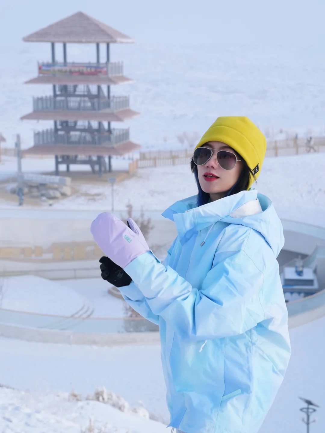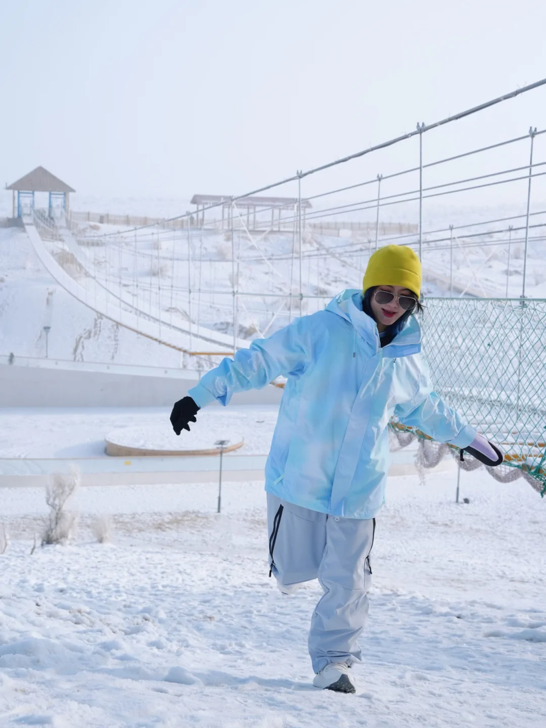 在路上了在路上了 已抵达S21沙漠公路 打卡点:古乌班通古特沙漠 OOTD: 帽子:EX2 手套:EX2 雪服:某🍑 雪裤:某🍑 鞋子:骆驼雪地靴