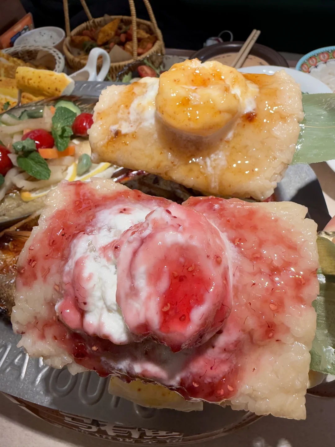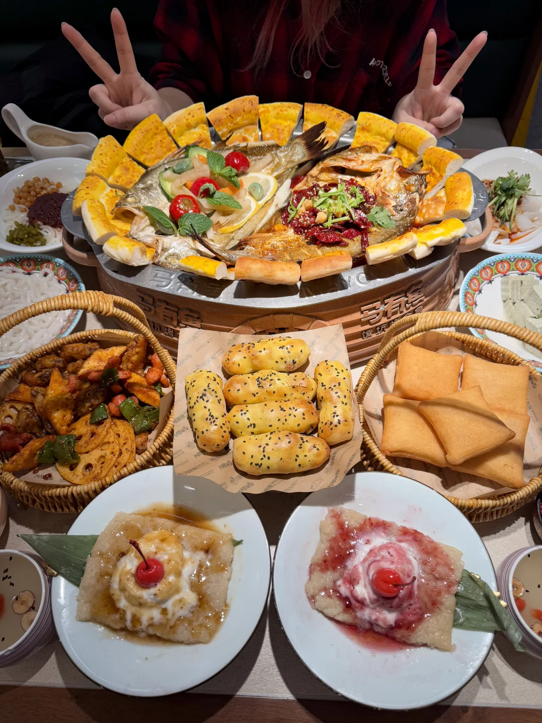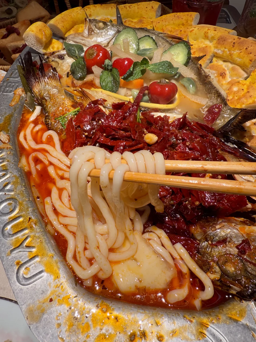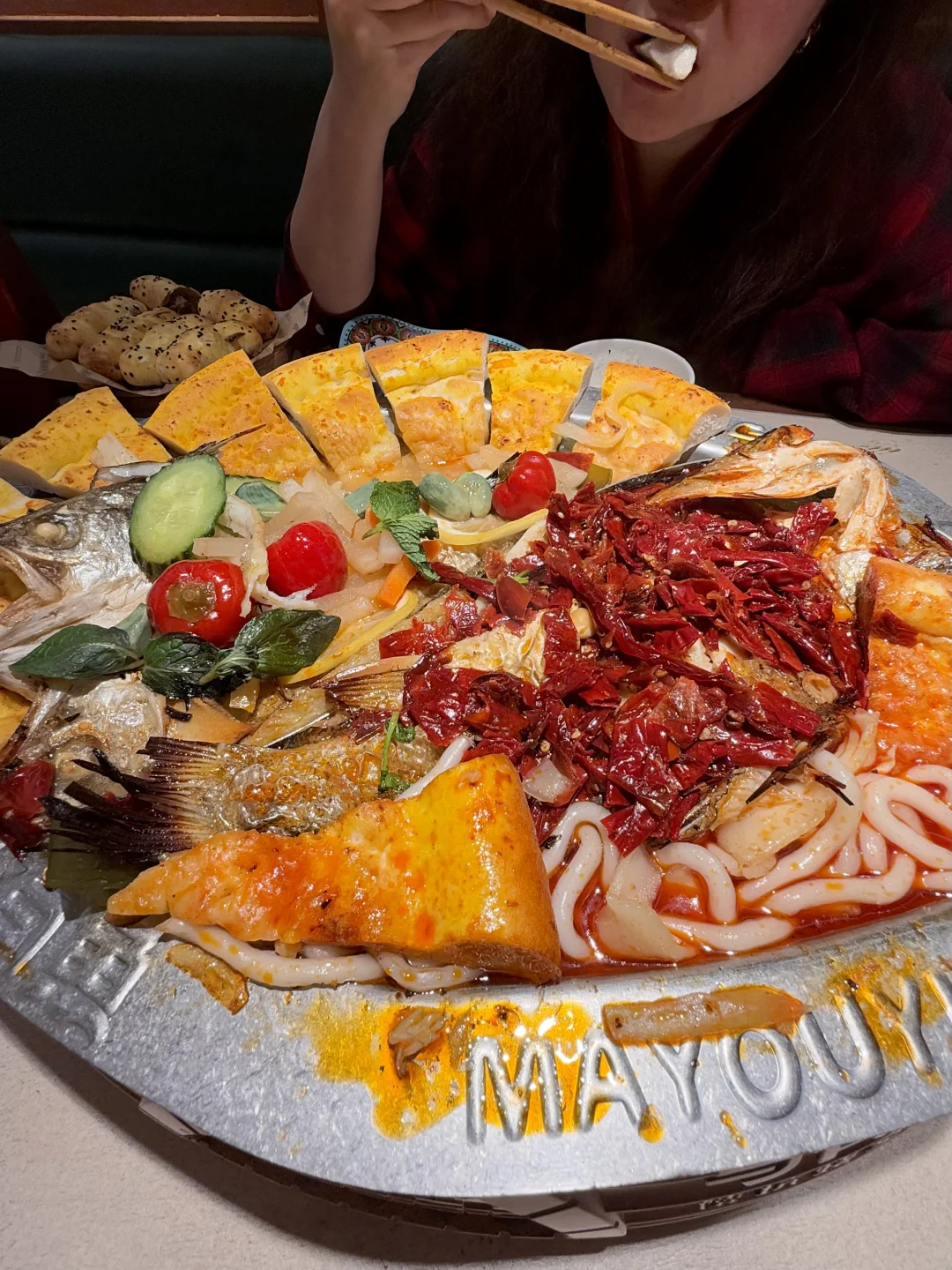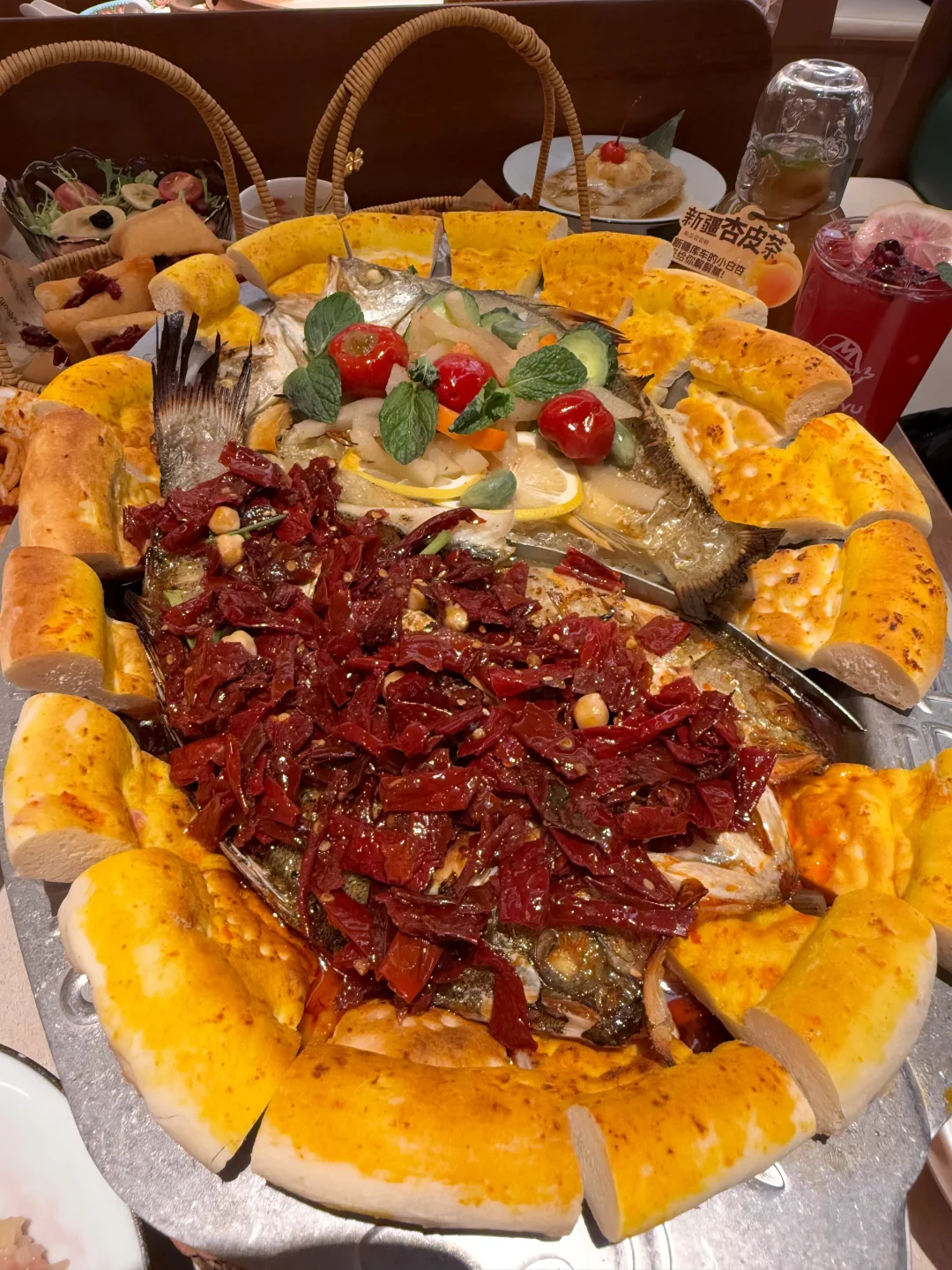 辣!皮!子!馕坑烤鱼!酸奶粽子!烤包子! 已经吃三次了!爱吃辣的一定要吃招牌辣皮子烤鱼,铺满了新疆的辣皮子又香又辣!馕坑烤的鲈鱼刺很少,外表焦焦脆脆口感,鱼肉嫩嫩的也很入味! 吃到最后的汤汁用皮芽子馕沾着吃,再煮点儿手擀粉…嗦起来真的好吃的停不下来! 酸奶粽子也每次都会点,新疆的酸奶好香醇!还有烤羊肉包子和新疆炸串也很好吃! 记得吃完领个大馕去拍照📸打卡! 西安美食周末去哪儿西安吃喝玩乐本地人爱吃的店西安大雁塔烤鱼新疆美食马有鱼烤匠西安首店一份来自新疆的空投