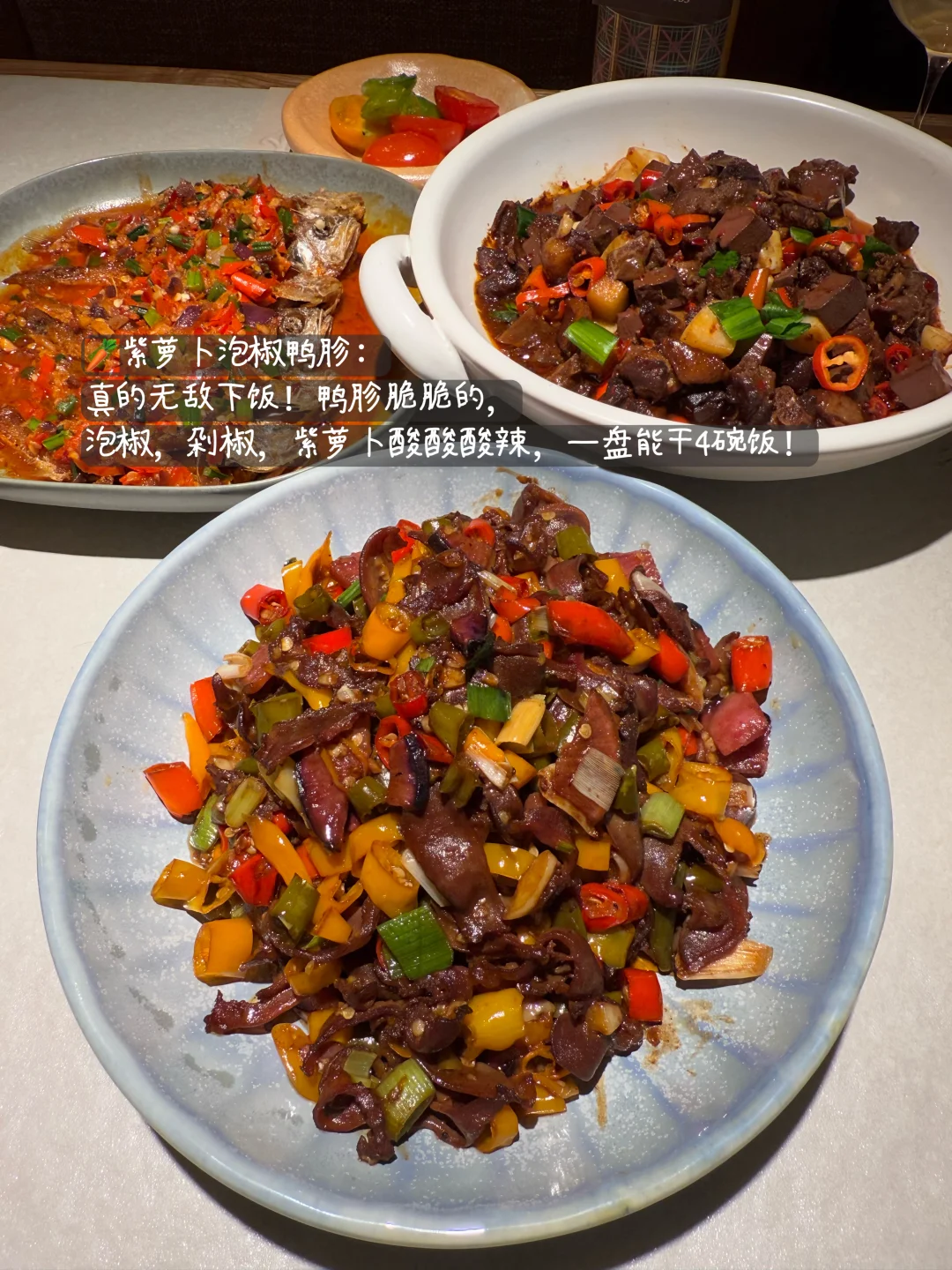 真的无敌下饭!鸭胗脆脆的,泡椒,剁椒,紫萝卜酸酸酸辣,一盘能干4碗饭!