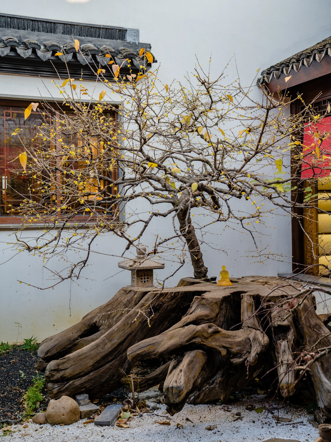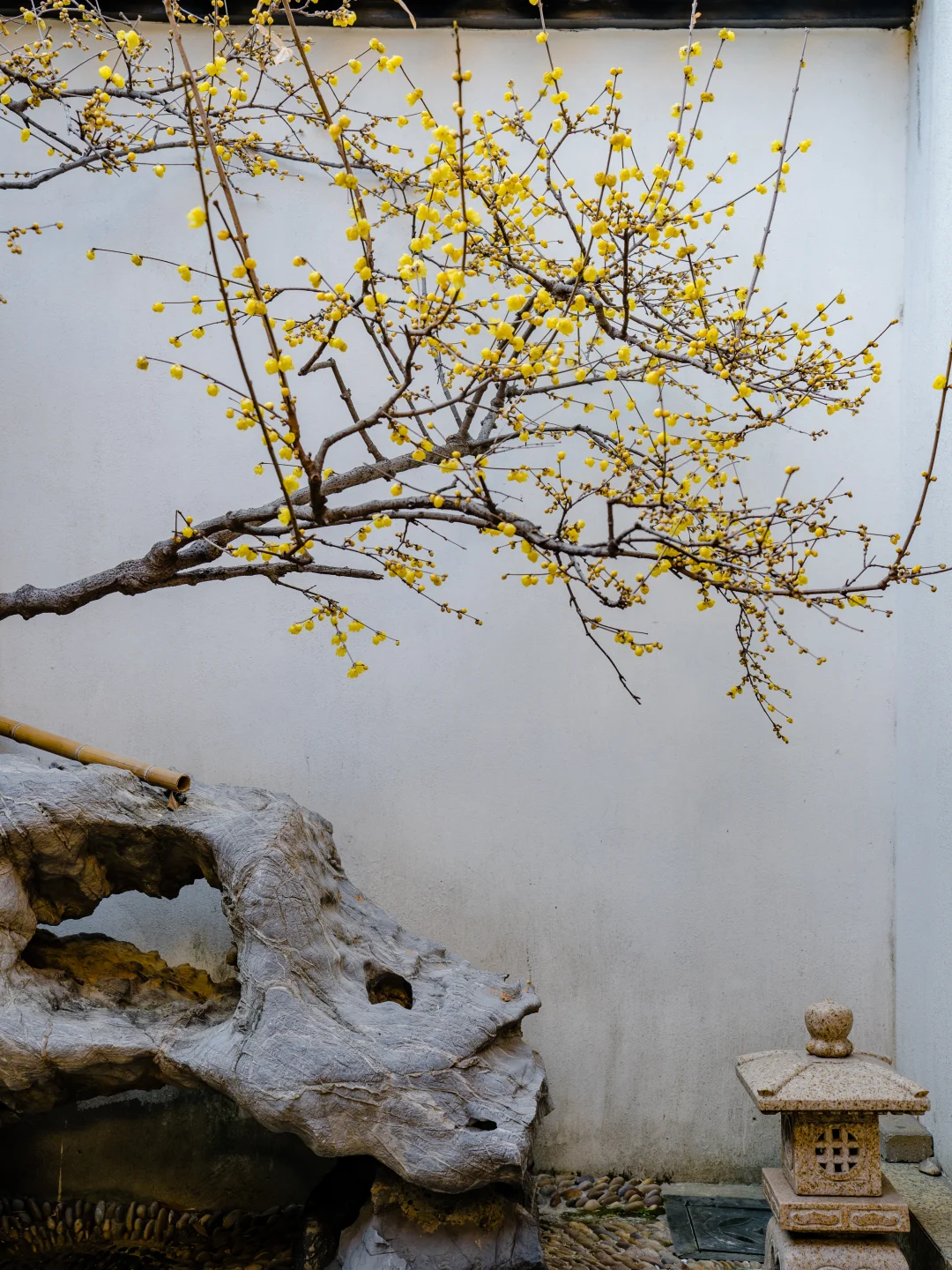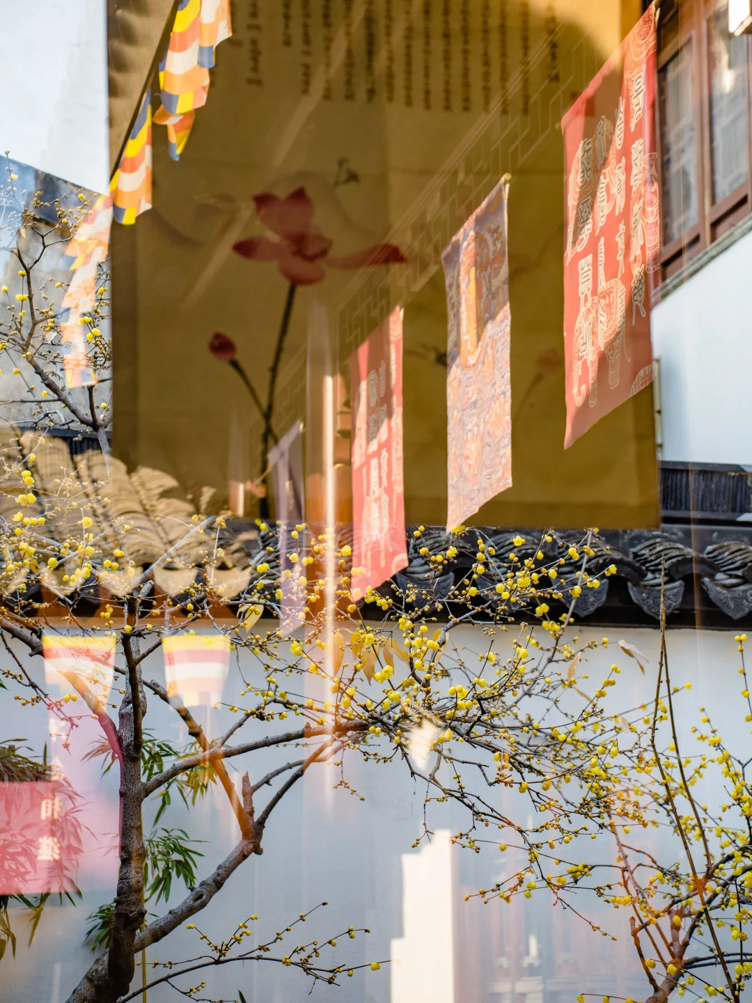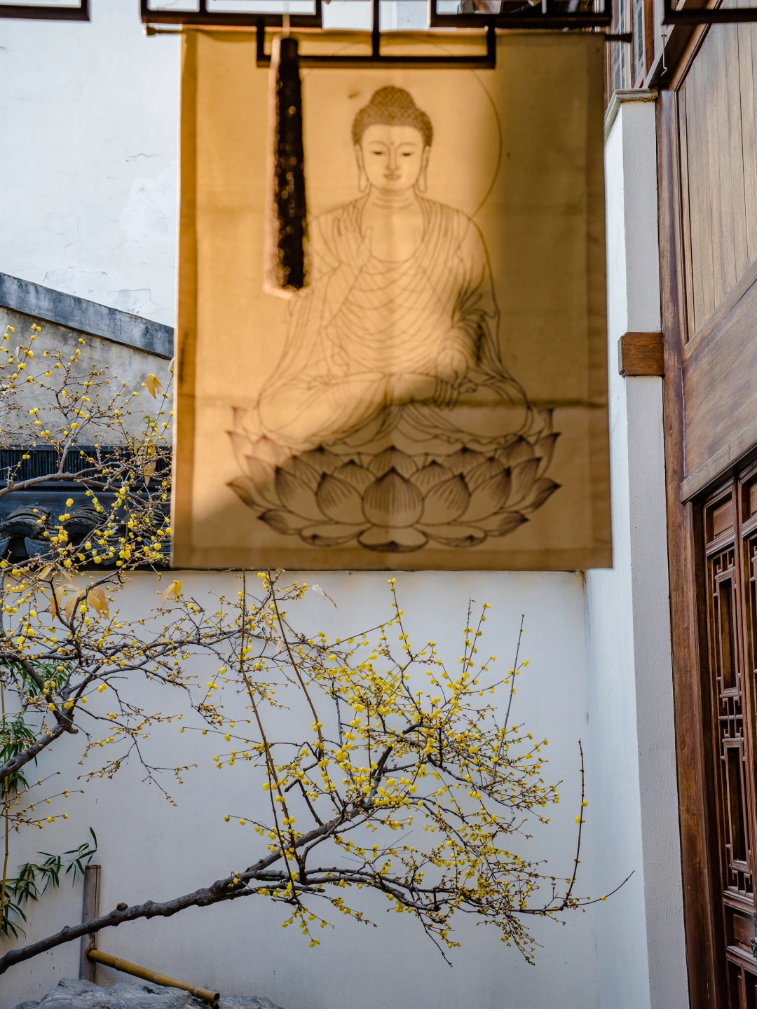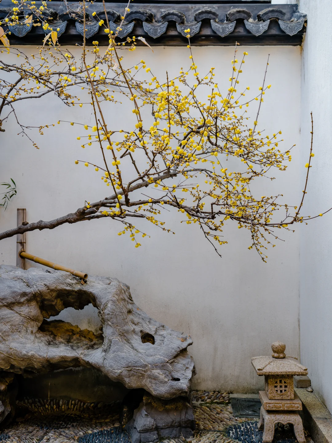 一花一世界,禅意何处寻。 腊梅开时, 姑苏便多了一分诗意的静谧。 若问苏州哪里的腊梅蕞有禅意, 那答案一定是藏在平江路菉葭巷的居士林。 居士林内的这一株, 其美不止于色香, 更在于一份 “克制生长的枝条,没有一丝多余” 的东方留白意境。 它倚着白墙褐瓦, 或探入花窗框景, 本身就如一幅会呼吸的写意国画。 - 📍平江路菉葭巷 居士林 -