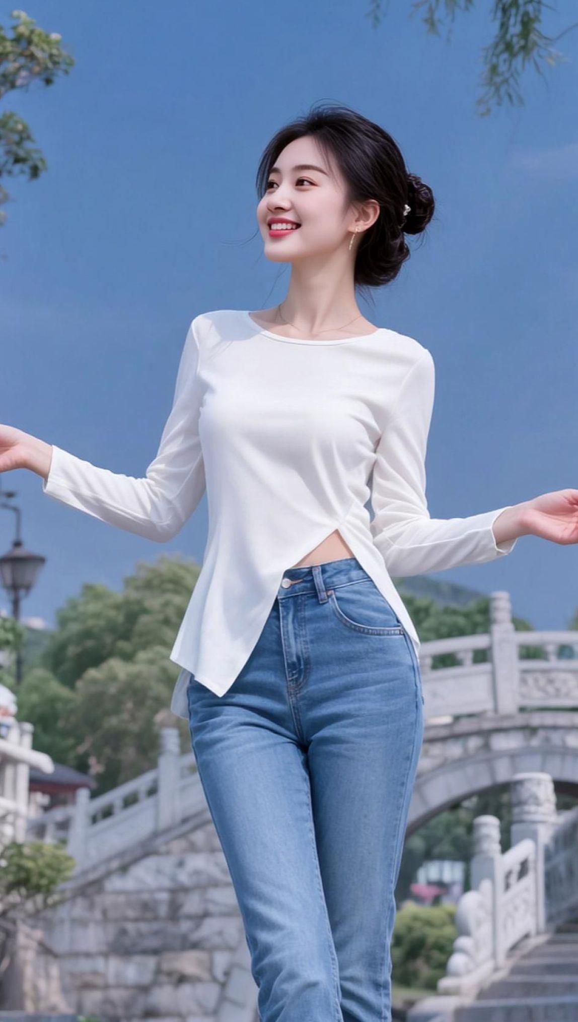 AI湖畔随拍 抖音ai创作 紧身牛仔裤 氛围感美女 摄影记录生活