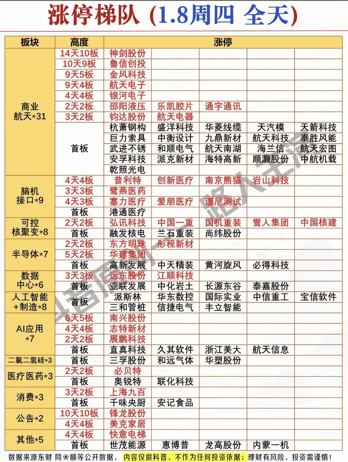 涨停梯队全解析,助你抓住投资机会! 航天军工领涨,医疗消费活跃,AI与半导体异动,多股连板创新高。市场热点轮动,投资需理性。