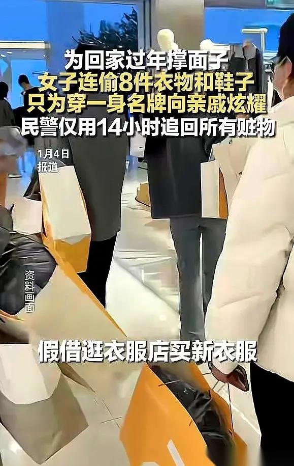 一个姑娘在城里偷了件貂,花了六千块,她想回老家炫耀一把,没想到14小时就被抓了。 她偷的不只是衣服,还有她的面子,她的虚荣心。 她在城里偷了两件貂,一件价值三万,一件价值两万多,她没花一分钱,就把自己下半辈子给赌上了。 过年回老家是一场人生汇报,靠的是自己真本事,不是偷来的面子。 监控和警察很给力,让她的“衣锦还乡”变成了“法制在线”,全村人都知道她的事。 你偷来的衣服值两万多,可你脱下来以后,还值多少钱? 麻烦看官老爷们右上角点击一下“关注”,既方便您进行讨论和分享,又能给您带来不一样的参与感,感谢您的支持!