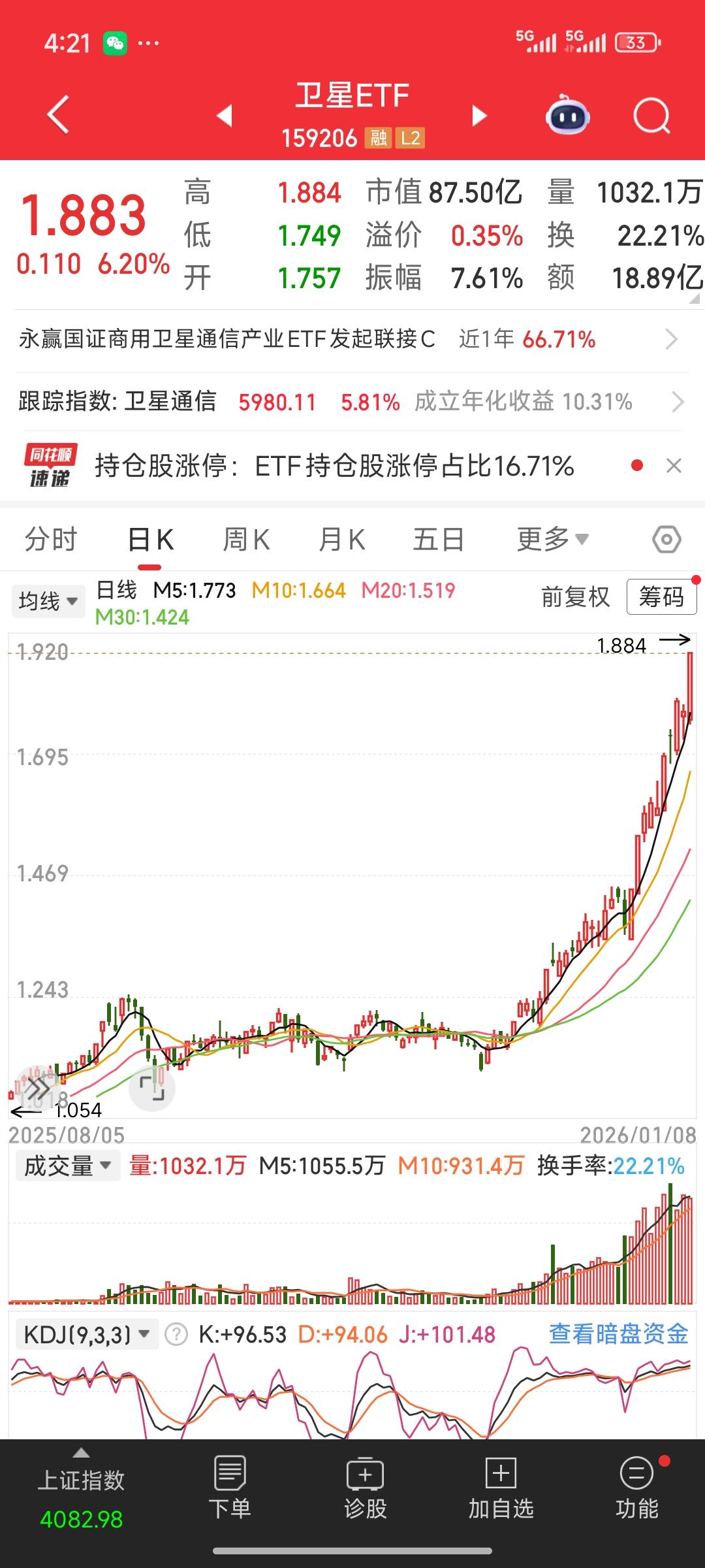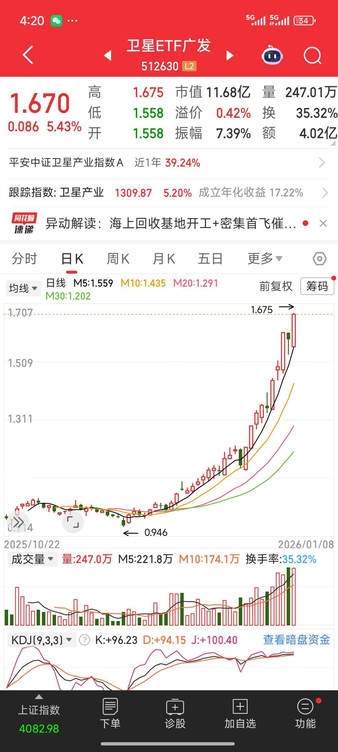 刚刚看了下场内卫星、商业航天、航空航天的ETF,最近涨幅相当惊人,完全是主升浪模式。咱们不用绞尽脑汁去挑选个股,直接通过ETF入场就行,省心又省力。这样既不容易错失机会,又能避免踩雷。 不过,从目前的情况看,ETF确实处于非常高的位置,得随时警惕大幅调整。我觉得现在还是谨慎为好,等调整之后再考虑参与第二波行情。 中国商业航天 ETF指数 ETF市场分析 股票基金etf 股票ETF 指数型etf etf板块 etf股票