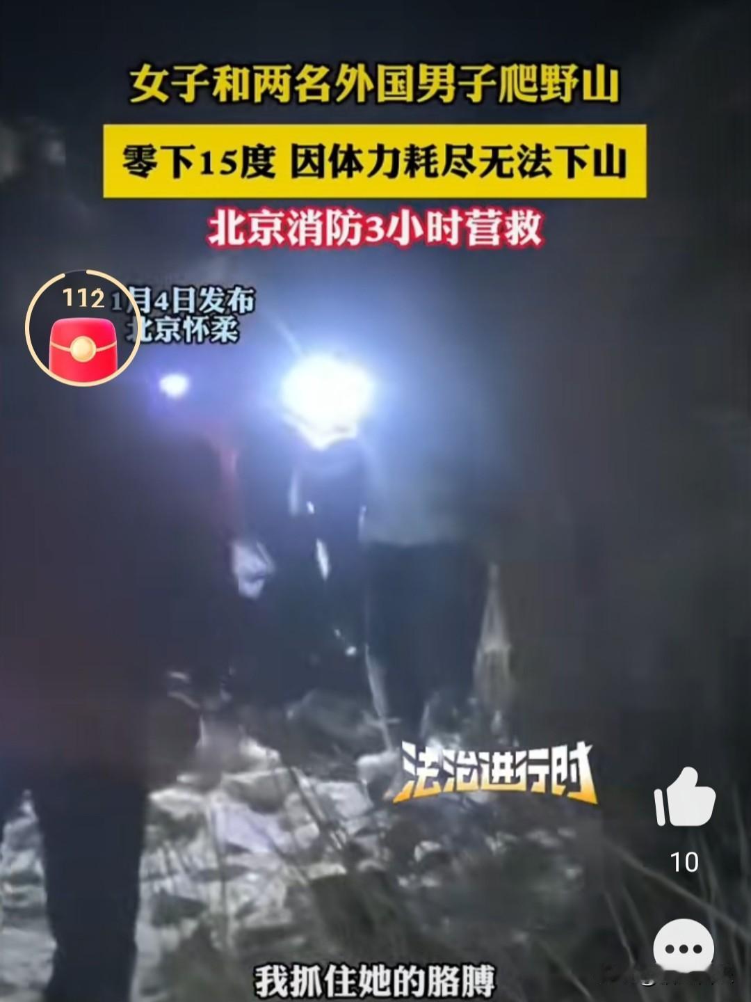 这女子太厉害了! 北京一个女的跟两个外国男子去夜爬野山?因体力耗尽无法下山,被北京消防员营救了3小时! 我就纳闷了,那是两个身强力壮的外国大老爷们,就算女的累瘫了,哪怕一人架一只胳膊也能给拖下来吧?怎么就能眼睁睁看着她困在那儿? 零下15度夜啊,野山碎石还结了薄冰,没有步道也没有防护,这得多大的瘾? 这所谓的“国际友谊”在关键时刻好像也不太顶用啊,还是得靠咱们东方大国的消防队员。 最倒霉的还是救援人员,大冷天还得冒着坠崖的风险,在那全是碎石薄冰的野山上折腾3个小时。 任性冒险挤占公共救援资源,万一别处有险情咋办?户外游玩非瞎闯,正规景区不香?别拿生命赌刺激,让他人为你侥幸买单! 现在很多地都在追缴违规救援费,这才是最该有的约束!你觉得,这类违规驴友该不该自己承担救援成本?看下次还敢不敢这么任性!野山登顶 野山路线 野山风景