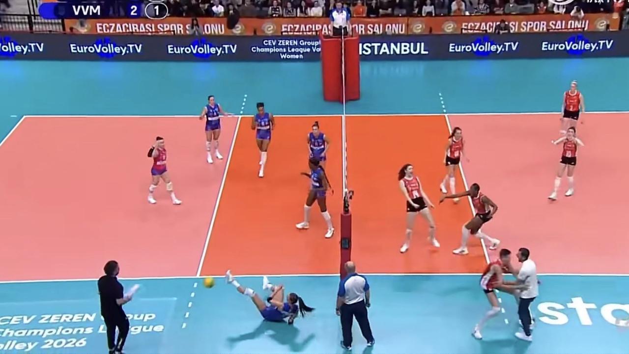 在1月8日欧冠女排伊萨3-2米兰的比赛中,伊萨重要球员之一的“表弟”卡拉库尔特在拦死埃格努后,完成把主帅“举高高”的招牌动作,她这是一如既往地喜欢过度的和夸张的庆祝动作!