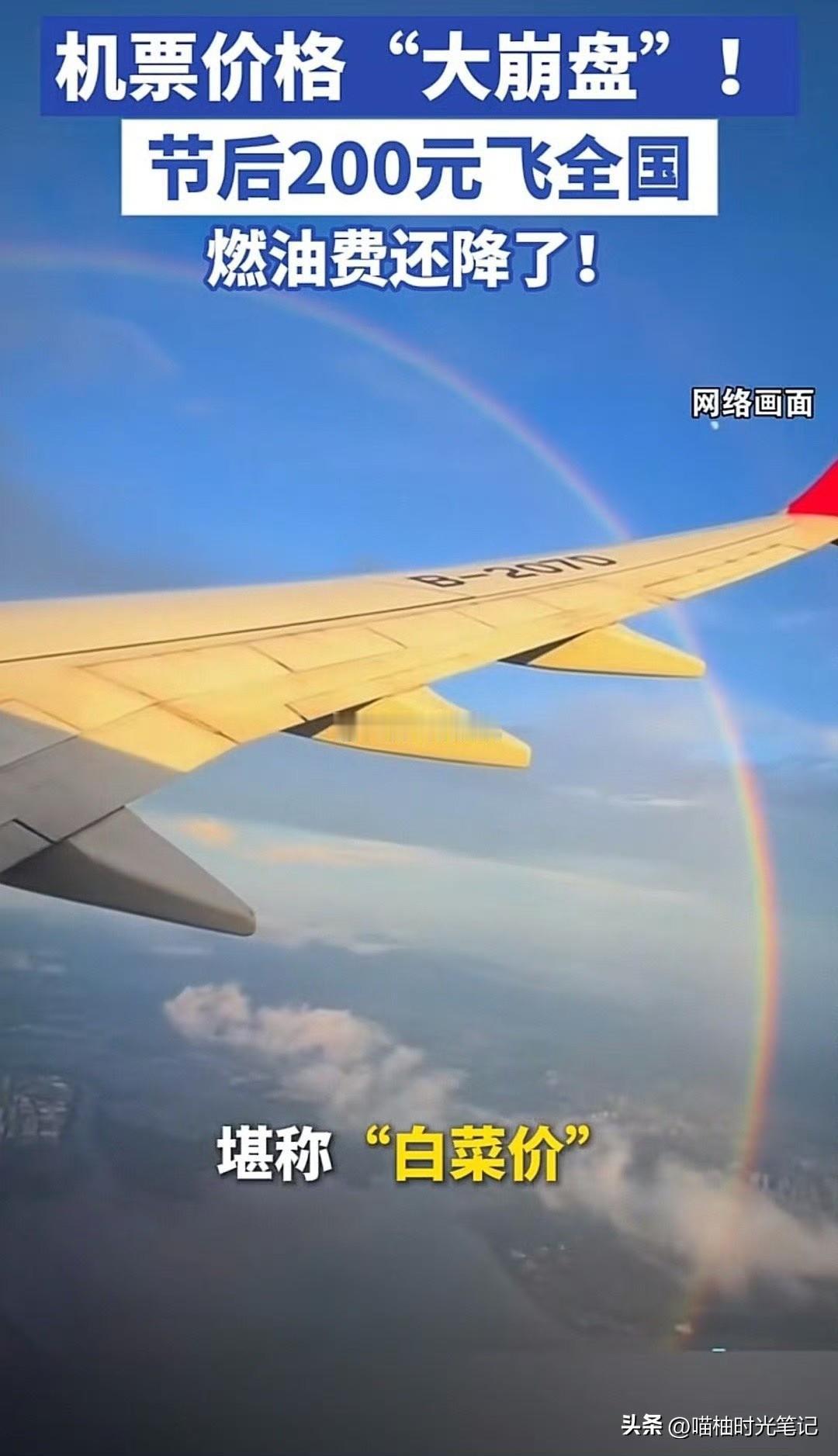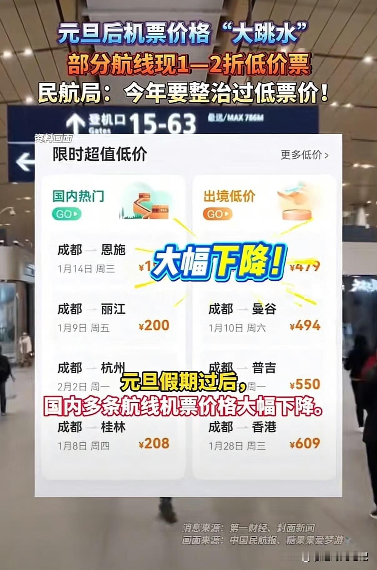 元旦刚收尾,航空票价就上演高空跳水:上海⇄哈尔滨300块、广州⇄上海210块,比动车二等座还便宜;北上广深、成都等枢纽港出发的多条航线跌幅惊人,最低打到0.9折。 这波“白菜价”一方面拜燃油附加费下调所赐,另一方面也埋着坑——不是每条航线都降,而且特价票往往“三不”:不退、不改、不签;想选座、托行李?请再掏腰包。 1月8日至15日堪称捡漏窗口期,有出行打算的朋友记得蹲守航司官网横向比价,看清退改规则、避开隐藏收费,那些像我一样没有假的宝宝们,还是安安心心当好“牛马”吧,等放假机票价格估计又上去了,与我们无关。[泪奔] 「图源网络」