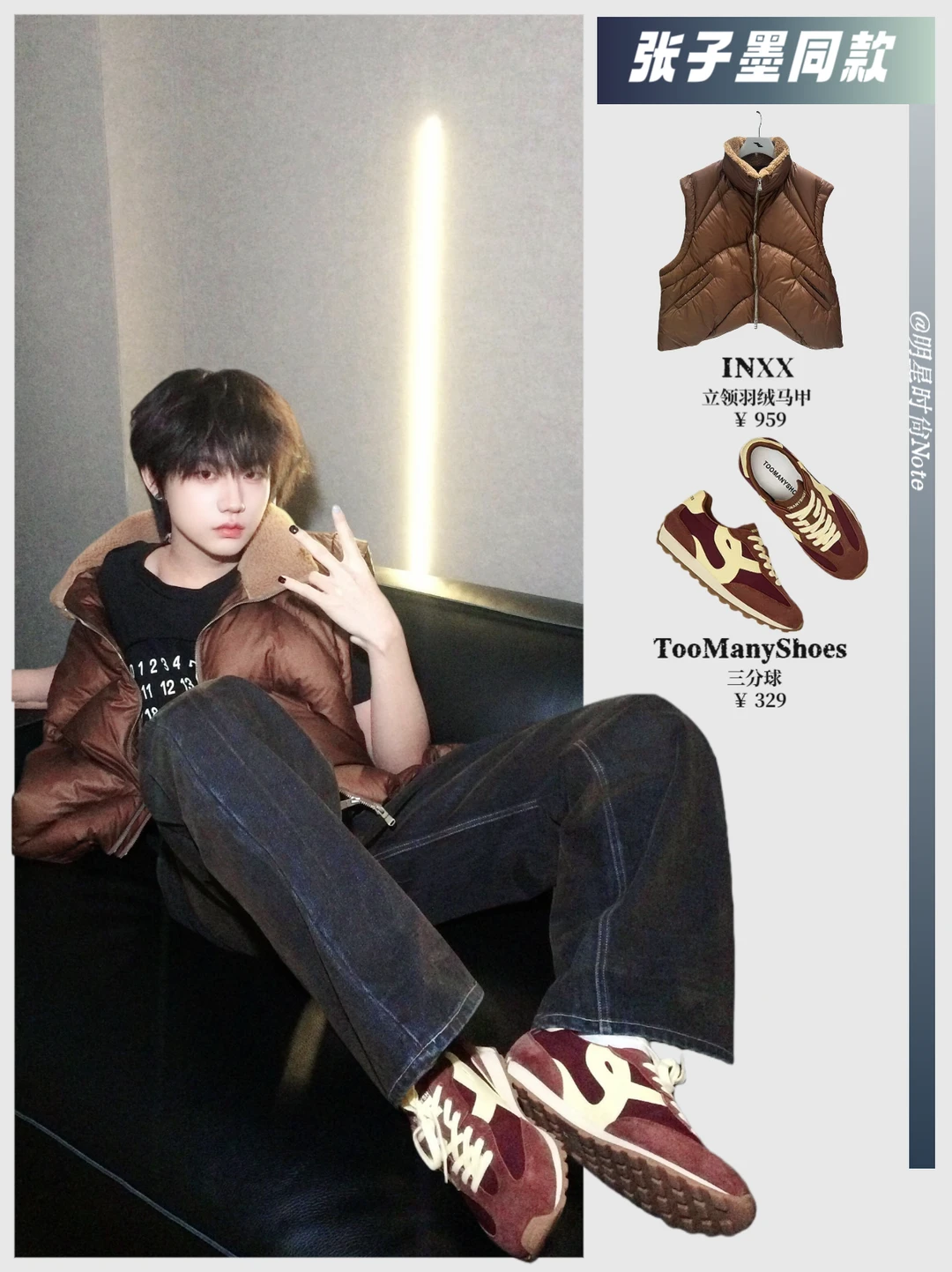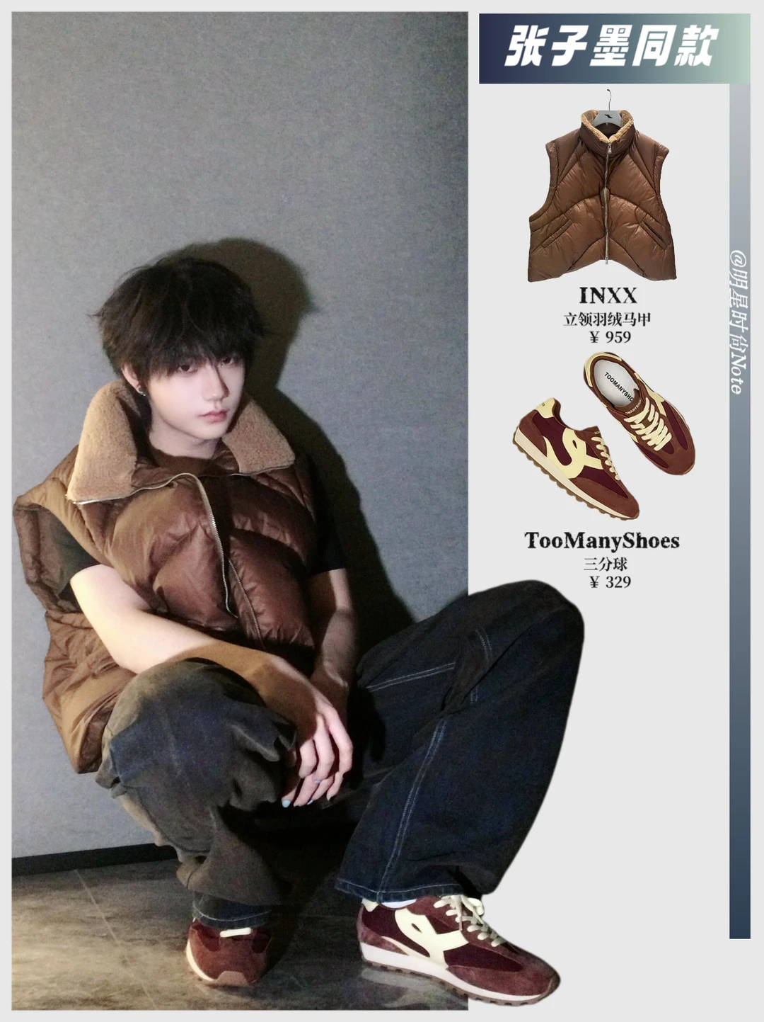 张子墨这次帅照真的很戳我😮💨 棕色羽绒夹克单看就很稳重,结果他偏偏配了同色系阿甘鞋🧥👟 刚好又是他应援色巧克力色,连配色都默默拿捏住了🍫 那种随性里带点讲究的感觉,懂的人一眼就懂😌 不是故意耍帅,但就是站在那里都有风格📸 越看越觉得,原来低调也可以这么帅得有分寸✨ 素材来源:张子墨 #张子墨[话题]# #张子墨同款[话题]# #明星同款[话题]# #ootd[话题]# #ootd每日穿搭[话题]# #冬季穿搭指南[话题]# #秋冬穿搭[话题]#