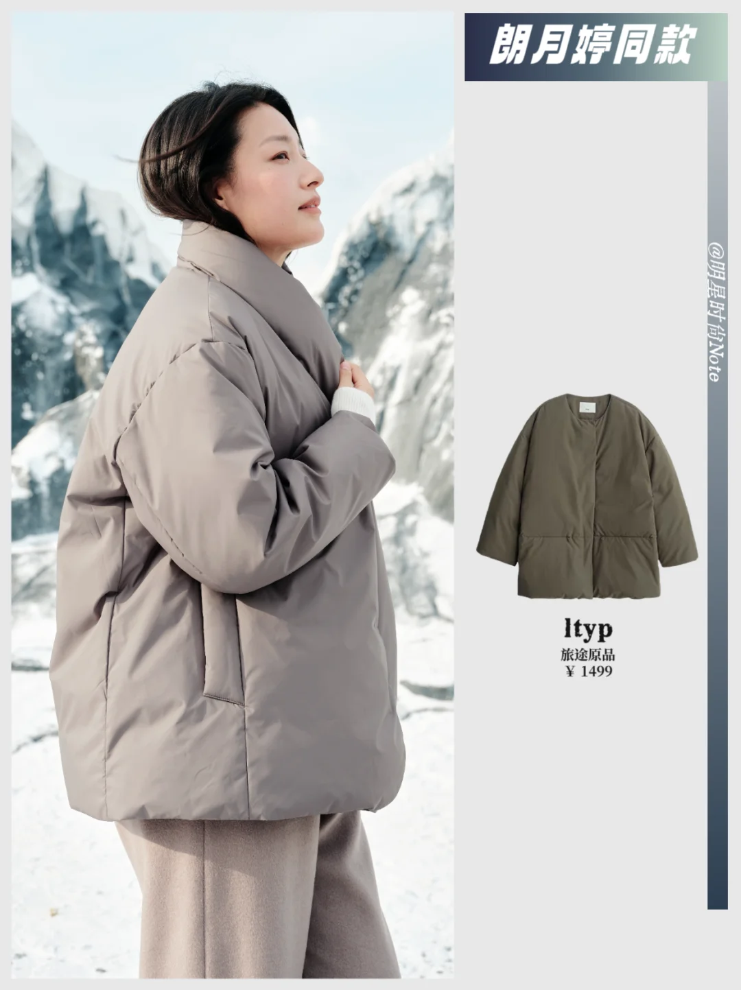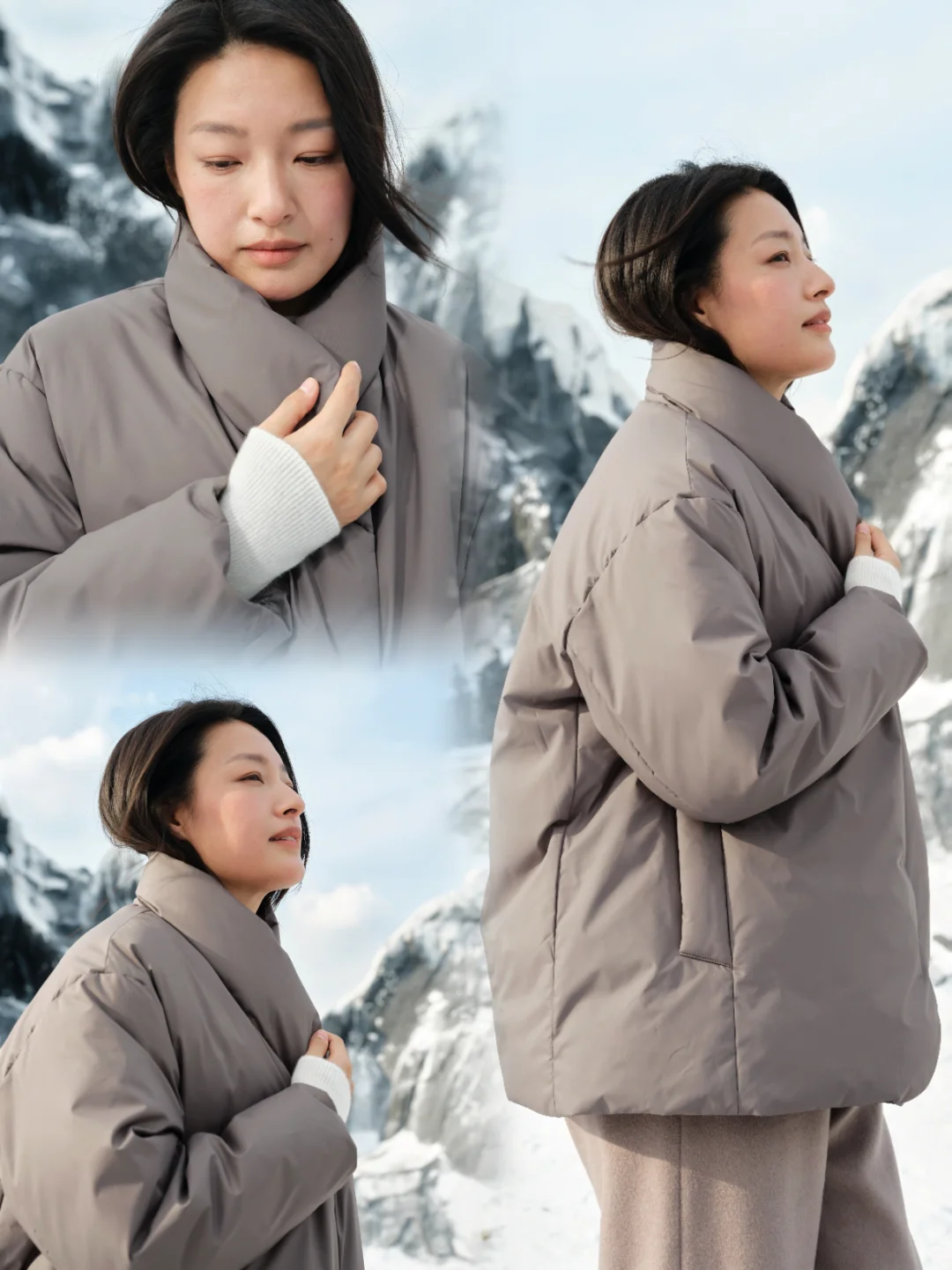 在雪山的背景下,整个造型清冷又温柔,仿佛从电影里走出来的女主角🎬。