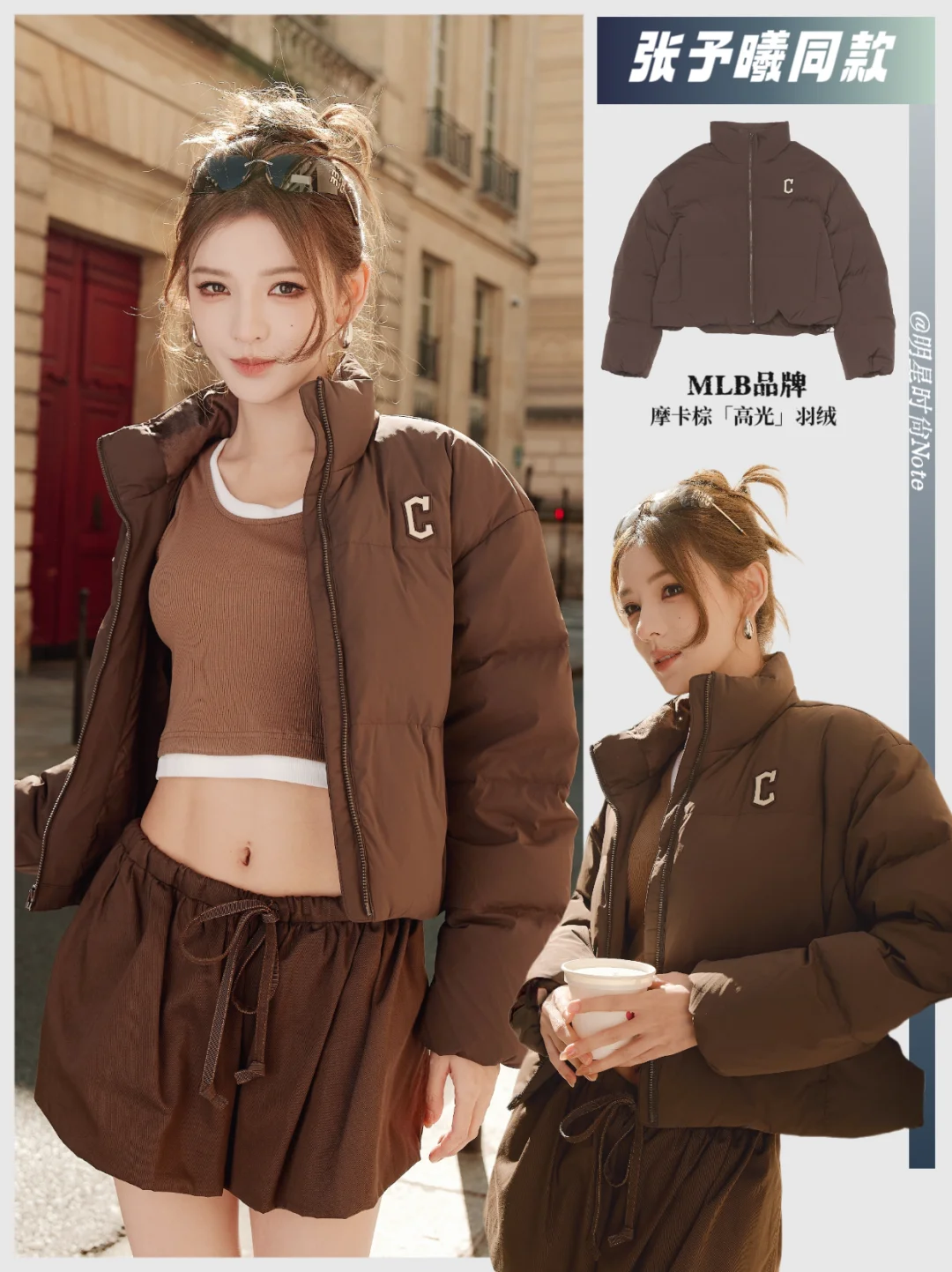 张婧仪短款羽绒配露腰内搭,甜酷刚刚好🎧