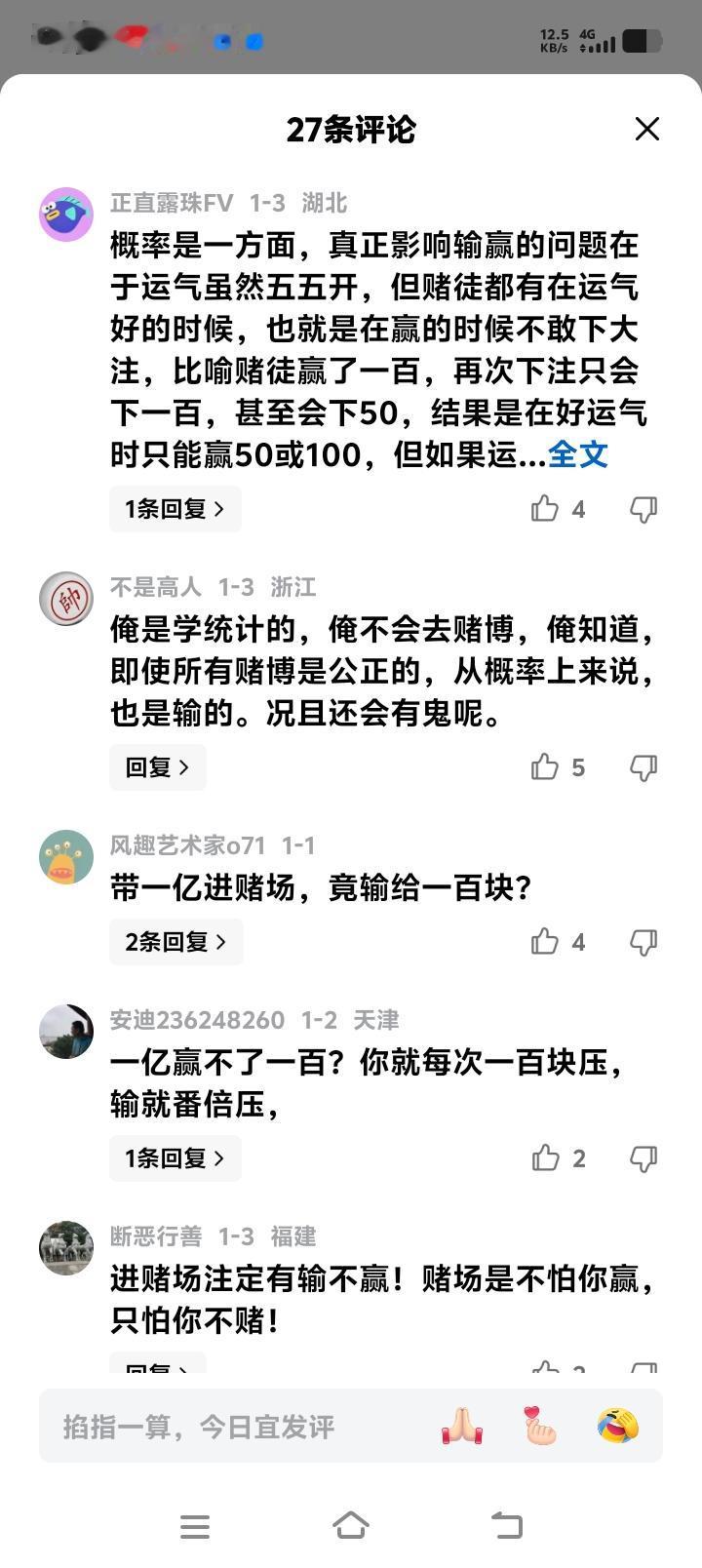 带一亿进赌场,竟输给一百块?数学天坑吞钱不眨眼,天理难容!揭秘赌场永不倒闭的黑暗法则,看完你还敢碰吗? 你或许听过“十赌九输”的老话,但你真的懂背后的数学屠刀吗?赌场灯光璀璨的背后,藏着一把精准收割的镰刀,它不靠运气,不靠作弊,只靠一道冷冰冰的公式。今天,我们就撕开这层华丽外衣,看看庄家如何用概率,掏空每一个妄想暴富的灵魂。 轮盘赌的红色与黑色,看似是公平的二分选择。可那小小的绿色零格,就是赌场埋下的致命陷阱。你以为胜负各半,实则概率早已暗中倾斜。每一次旋转,都是数学在无声宣判,庄家的优势就藏在这细微的差别里,像滴水穿石,慢慢蚀穿你的筹码。 短期内的输赢,不过是数学游戏抛出的诱饵。你赢一次,心跳加速;输一局,以为下次能翻盘。赌场微笑着看你情绪起伏,因为它手握“大数定律”这柄尚方宝剑。时间越长,次数越多,结果就越会滑向它预设的终点。你的运气,在概率面前不堪一击。 更残酷的是“赌徒破产定理”。即使游戏绝对公平,只要你的本金有限,而赌场资本近乎无限,那么长期对抗下去,你破产是数学上的必然。赌场就像一片深海,而你是一叶扁舟,风浪不必太大,只需持续不断,终有倾覆之时。 有人幻想,我带巨款入场,每次只下小注,赢一点就走,难道不行吗?数学冷笑一声,给出冰冷答案:哪怕你携带一亿本金,目标仅是赢一百块,用小额多次的策略,你成功的概率也渺茫得如同海底捞针。你的巨额财富,在系统的概率磨损下,终将化为乌有。 那么,难道毫无胜算?策略转换或许有一线生机。将无数次的微弱劣势博弈,转化为一次性的豪赌,反而能短暂挣脱概率的绞索。但这无异于刀尖跳舞,赢了是侥幸,输了便是深渊。赌场从不惧怕这种孤注一掷,因为它知道,大多数人只要尝过甜头,就会再次回来,回到那个必输的循环里。 从轮盘到二十一点,从老虎机到百家乐,所有游戏的核心都一样——内置的数学优势。这些优势看似微小,如同不起眼的尘埃。但当它们随着投注次数堆积起来,就变成了压垮赌徒的巍峨高山。赌场设计的从来不是游戏,而是一台精密运转的时间机器,专门吞噬你的未来。 所以,别再相信“见好就收”的鬼话。在你踏入赌场的那一刻,你就已经坐在了输家的位置上。数学规则早已写定结局,所有的热血、智慧和运气,在它面前都是徒劳的挣扎。赌场永不眠,因为它贩卖的不是希望,而是经过精美包装的、必然的失去。 本文旨在揭示赌博背后的数学原理与巨大风险,倡导健康生活,远离赌博。内容综合自概率论、博弈论研究及公开数学模型分析,仅供读者警醒与思考。 赌博危害 概率真相