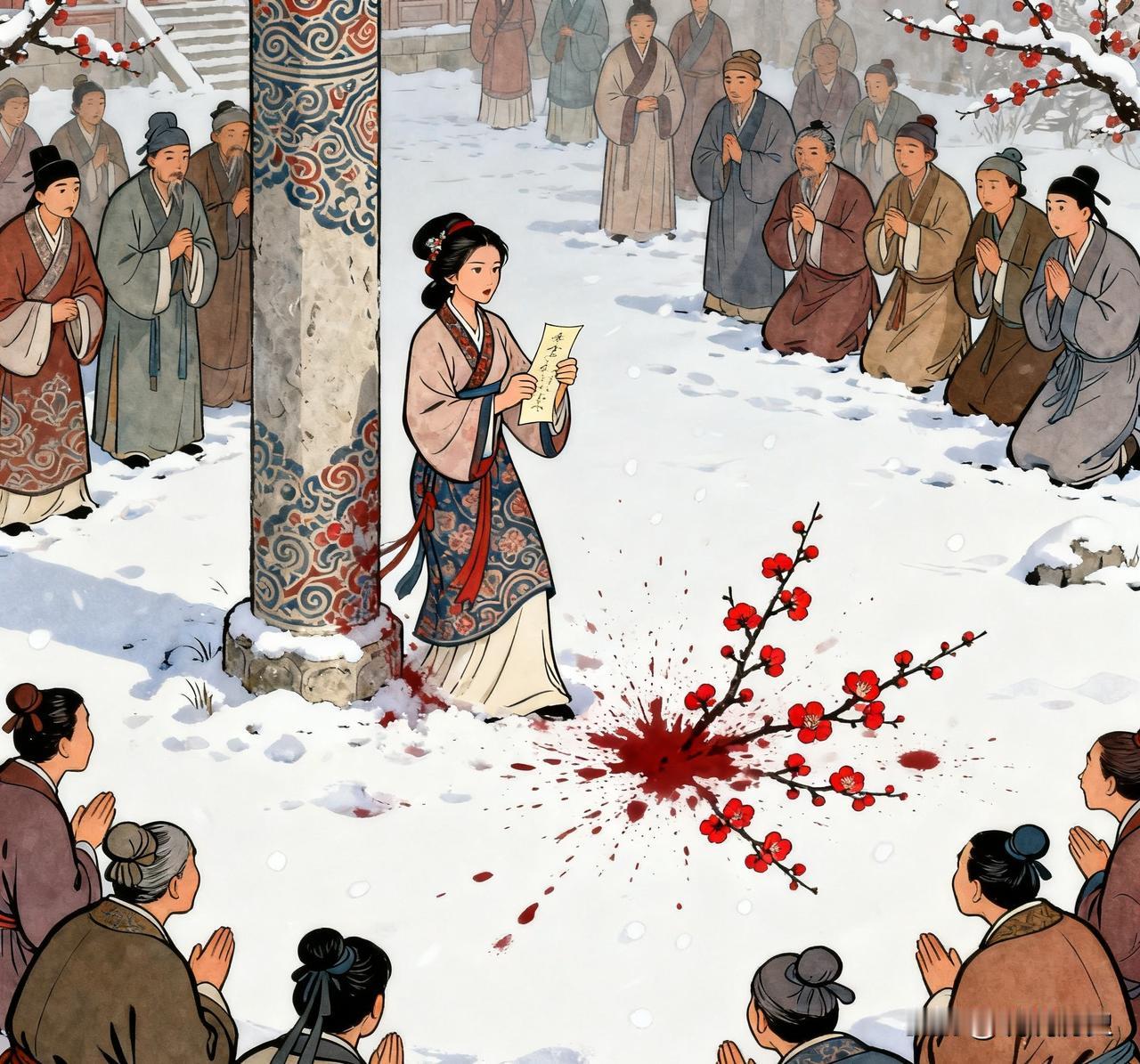 1283年,文天祥在元大都被杀,妻子和女儿也已沦为大元宫奴,得知文天祥身死,妻子欧阳氏闻讯后奔赴刑场收殓丈夫遗骸,在其衣襟内发现一张字条,阅读后随即自尽。 那是元大都最冷的一个正月,寒风像刀子似的刮在脸上,欧阳氏穿着单薄的宫奴服饰,赤着脚在雪地里狂奔。宫墙的锁链磨破了她的手腕,脚底被碎石划出一道道血口子,可她顾不上疼,满脑子都是丈夫临行前隔着牢狱铁窗说的那句话:“吾妻莫哭,吾身许国,死后魂魄亦护家国。”她被掳入宫中三年,每日舂米洗衣、受尽屈辱,支撑她活下去的,就是等着有一天能再见文天祥一面,哪怕只是收殓他的遗骸。 刑场在大都城南的柴市口,此时早已围满了百姓,地上的血迹被白雪覆盖,却掩不住那股刺鼻的血腥味。欧阳氏拨开人群,一眼就看到了躺在雪地里的文天祥,他身着囚服,头发散乱,却依旧双目圆睁,神色凛然,仿佛只是睡着了一般。她跌跌撞撞地扑过去,紧紧抱住丈夫冰冷的身体,泪水混合着血水淌下来,在雪地里晕开一片暗红。 周围的元兵想要阻拦,却被百姓们用身体护住了她。有人低声叹息:“文丞相宁死不屈,真是铁骨铮铮的好汉。”也有人抹着眼泪:“欧阳夫人也是个刚烈女子,跟着丞相受了这么多苦。”欧阳氏没有理会周围的议论,颤抖着双手为丈夫整理衣襟,想要让他走得体面些。就在这时,她的手指触到了衣襟内侧的一个硬物,小心翼翼地掏出来,原来是一张折叠整齐的字条,上面是文天祥熟悉的字迹,墨迹早已干透,却依旧力透纸背。 字条上只有二十个字:“孔曰成仁,孟曰取义,惟其义尽,所以仁至。读圣贤书,所学何事?而今而后,庶几无愧。”欧阳氏一遍遍读着,每一个字都像重锤敲在她的心上。她想起年轻时,夫妻俩在庐陵的庭院里共读圣贤书,文天祥曾对她说:“为夫此生,不求富贵,只求不负家国,不负圣贤教诲。”如今,他做到了,用生命践行了自己的誓言。 欧阳氏缓缓站起身,目光扫过围观的百姓,声音虽然微弱却异常坚定:“吾夫以身殉国,吾岂能苟活于世?今日,我便随他而去,魂魄与他一同守护家国。”说完,她将字条紧紧攥在手心,猛地一头撞向旁边的石柱子。鲜血溅在白雪上,像一朵朵绽放的红梅,在场的百姓无不动容,纷纷跪地叩拜,哭声震天。 元兵见状,想要上前驱赶,却被一位白发老者拦住:“文丞相夫妇忠烈可嘉,你们若敢动他们一根毫毛,我等百姓绝不答应!”百姓们纷纷响应,愤怒的目光让元兵们不敢上前。有人找来木板,将文天祥夫妇的遗体抬起来,想要为他们寻一处安息之地。就在这时,人群中走出几个穿着儒衫的读书人,他们是文天祥的旧部,一直潜伏在大都,就是为了等待这一天。 他们将文天祥夫妇的遗体秘密送到了城郊的一座破庙里,连夜为他们清洗伤口、换上干净的衣物。欧阳氏的手中始终紧紧攥着那张字条,指甲都嵌进了肉里。旧部们看着这对忠烈夫妇,想起文天祥在狱中写下的《正气歌》,想起他面对元世祖忽必烈的威逼利诱时,始终坚守气节,宁死不降,无不潸然泪下。 消息很快传遍了大都,百姓们纷纷自发前来祭奠,有人带来了香火,有人带来了素酒,破庙里挤满了人,却异常安静,只有压抑的哭声和低声的祈祷。就连一些有良知的元兵,也悄悄前来,对着夫妇俩的遗体深深鞠躬。他们敬佩文天祥的忠烈,也敬佩欧阳氏的贞洁,在这个乱世之中,这样的气节太难能可贵了。 几天后,文天祥的旧部趁着夜色,将夫妇俩的灵柩悄悄送出大都,历经千辛万苦,终于将他们送回了江西庐陵老家。消息传回江南,百姓们夹道相迎,哭声不绝。人们为他们修建了合葬墓,墓碑上刻着“宋丞相文忠公与夫人欧阳氏之墓”,前来祭拜的人络绎不绝,香火不断。 文天祥的女儿文柳娘和文环娘在宫中得知父母双亡的消息,悲痛欲绝,却碍于身份无法前去祭奠。她们在宫中默默为父母祈祷,继承了父母的气节,始终不肯侍奉元朝皇室,每日以泪洗面,不久后也郁郁而终。百姓们为了纪念她们,在文家墓旁修建了两座小坟,称其为“二贞女墓”。 多年后,明朝建立,朱元璋追谥文天祥为“忠烈公”,并下令重修其陵墓,让后人永远缅怀他的忠烈之举。那张字条被后人珍藏,成为了中华民族精神的象征,激励着一代又一代的中国人坚守气节、爱国如家。而文天祥与欧阳氏的故事,也被人们口口相传,成为了一段千古佳话,告诉世人:真正的爱情,是生死与共、志同道合;真正的气节,是宁死不屈、不负家国。 出处:历史典故改编