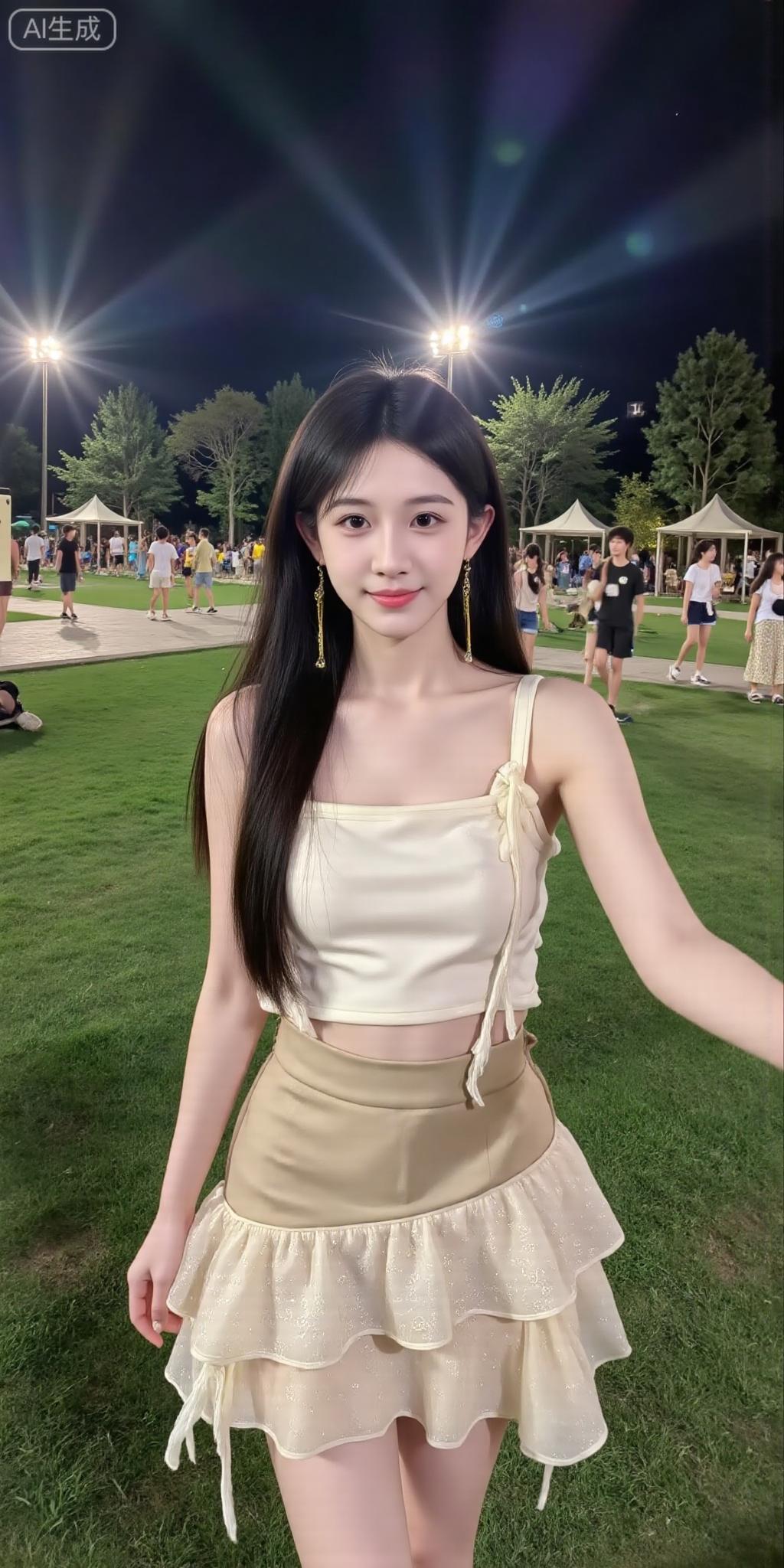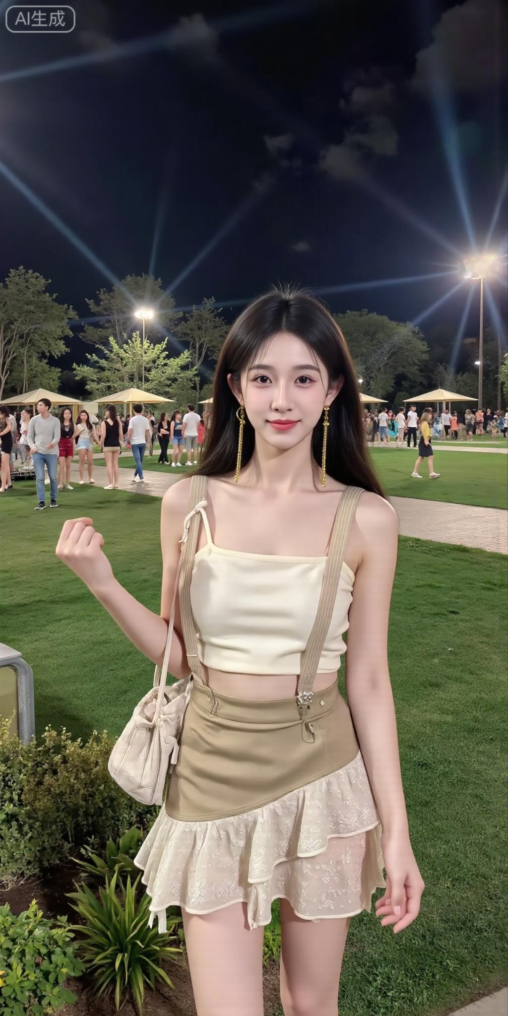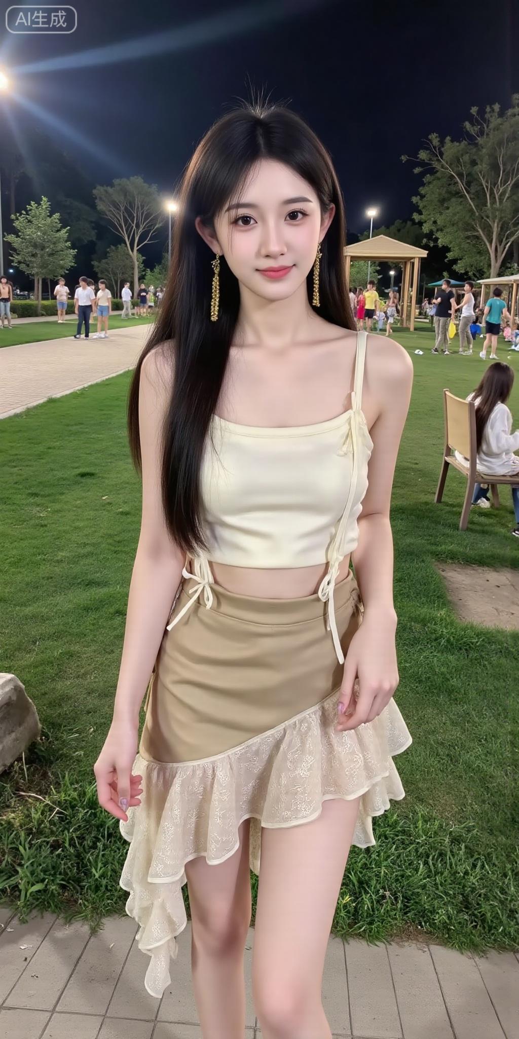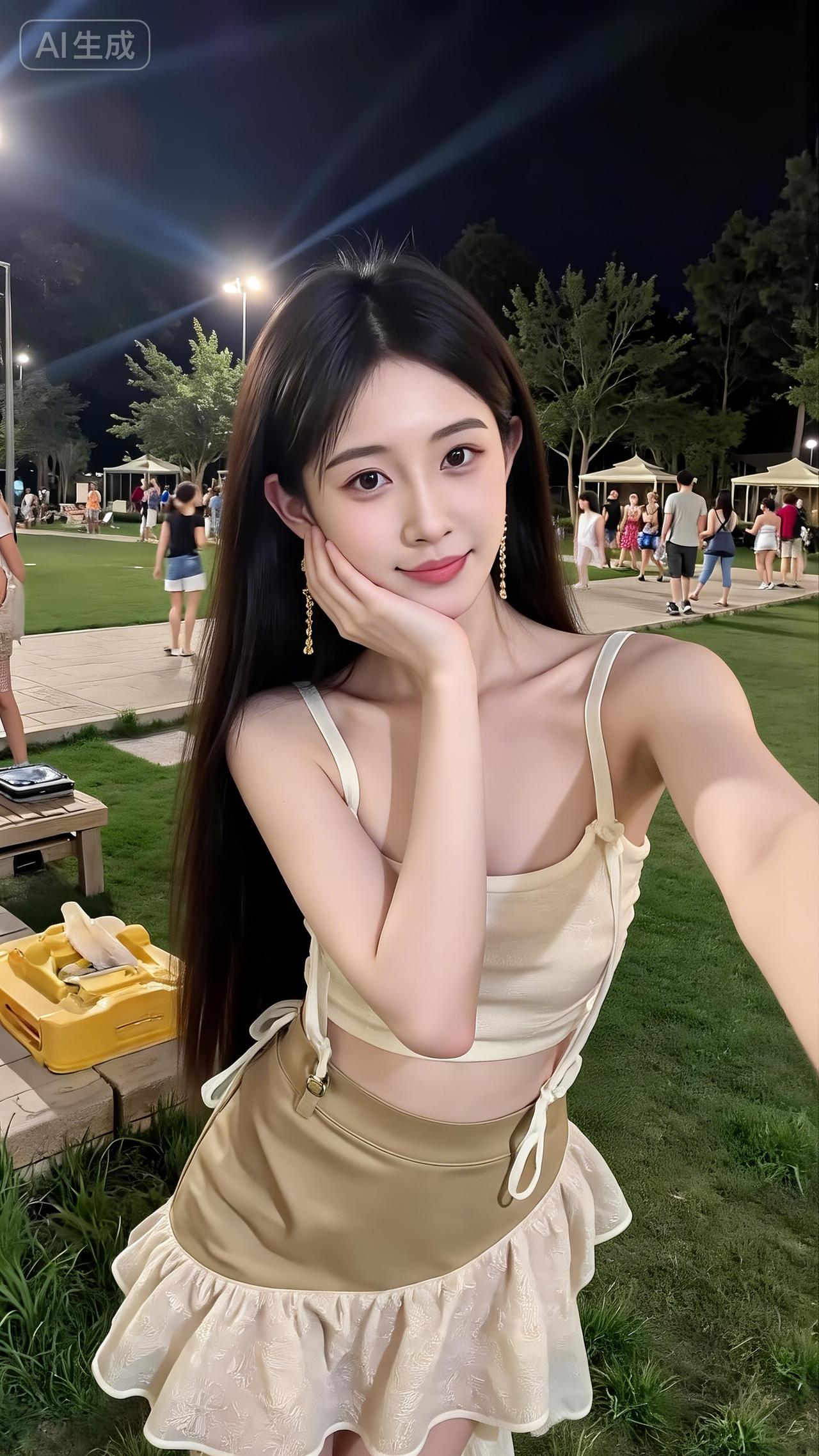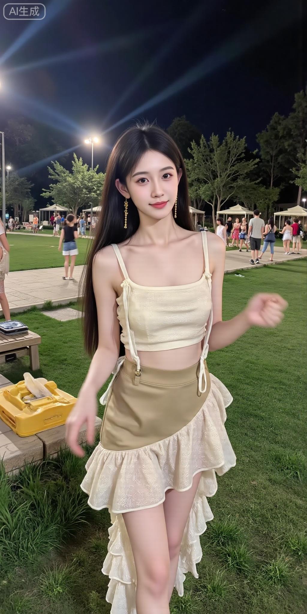 夏夜草坪上的氛围感甜妹 奶黄吊带+杏色蕾丝裙,温柔又带点小精致~长耳坠衬得脖颈纤长,露腰设计刚好勾出轻盈感✨ 晚风里的她像裹了层月光,是人群里一眼就能看到的心动呀~薄荷奶绿吊带裙 紫色蕾丝吊带