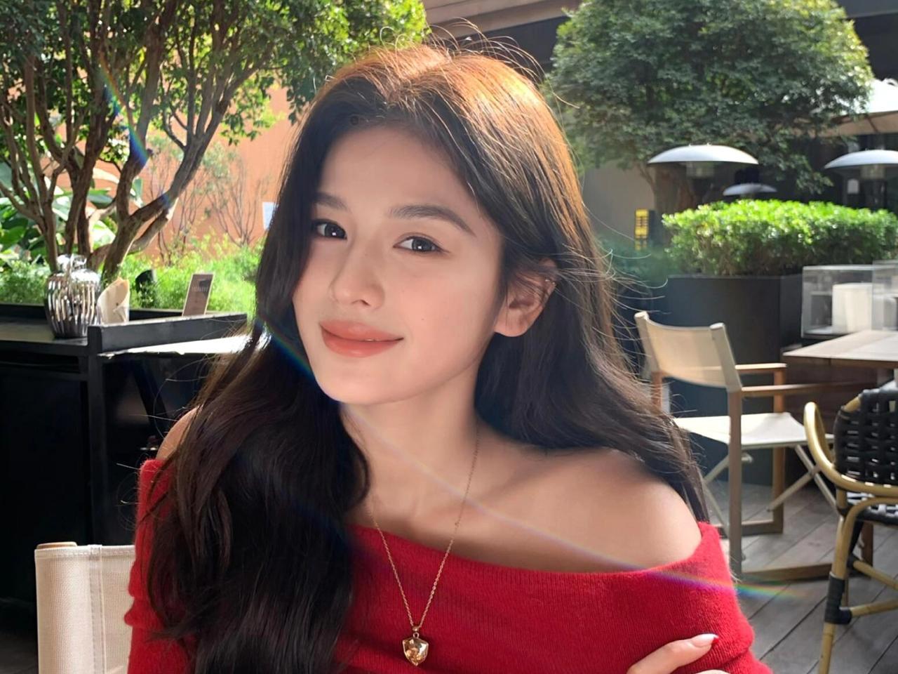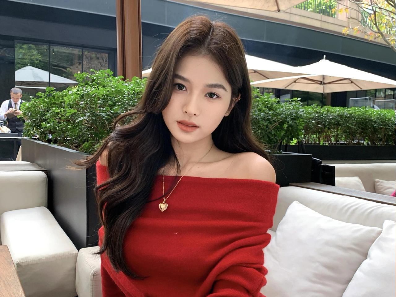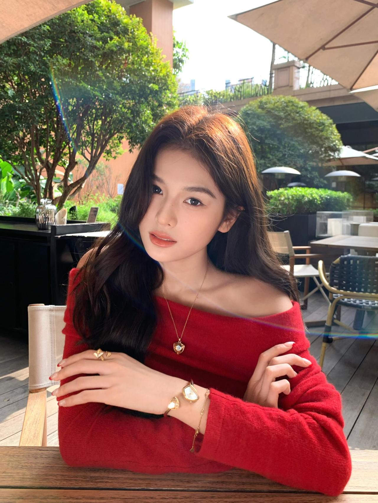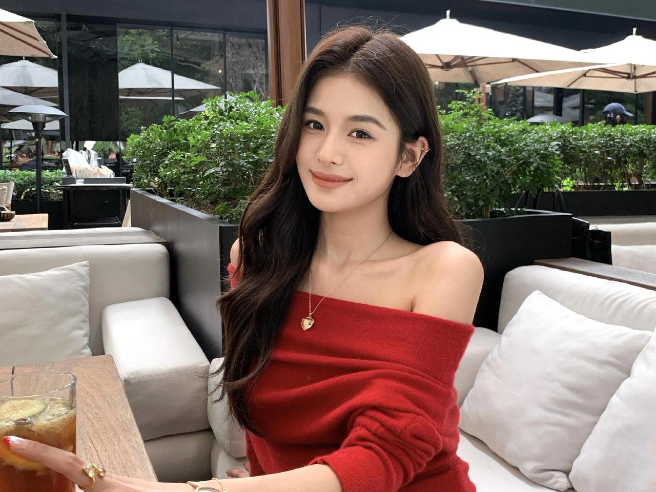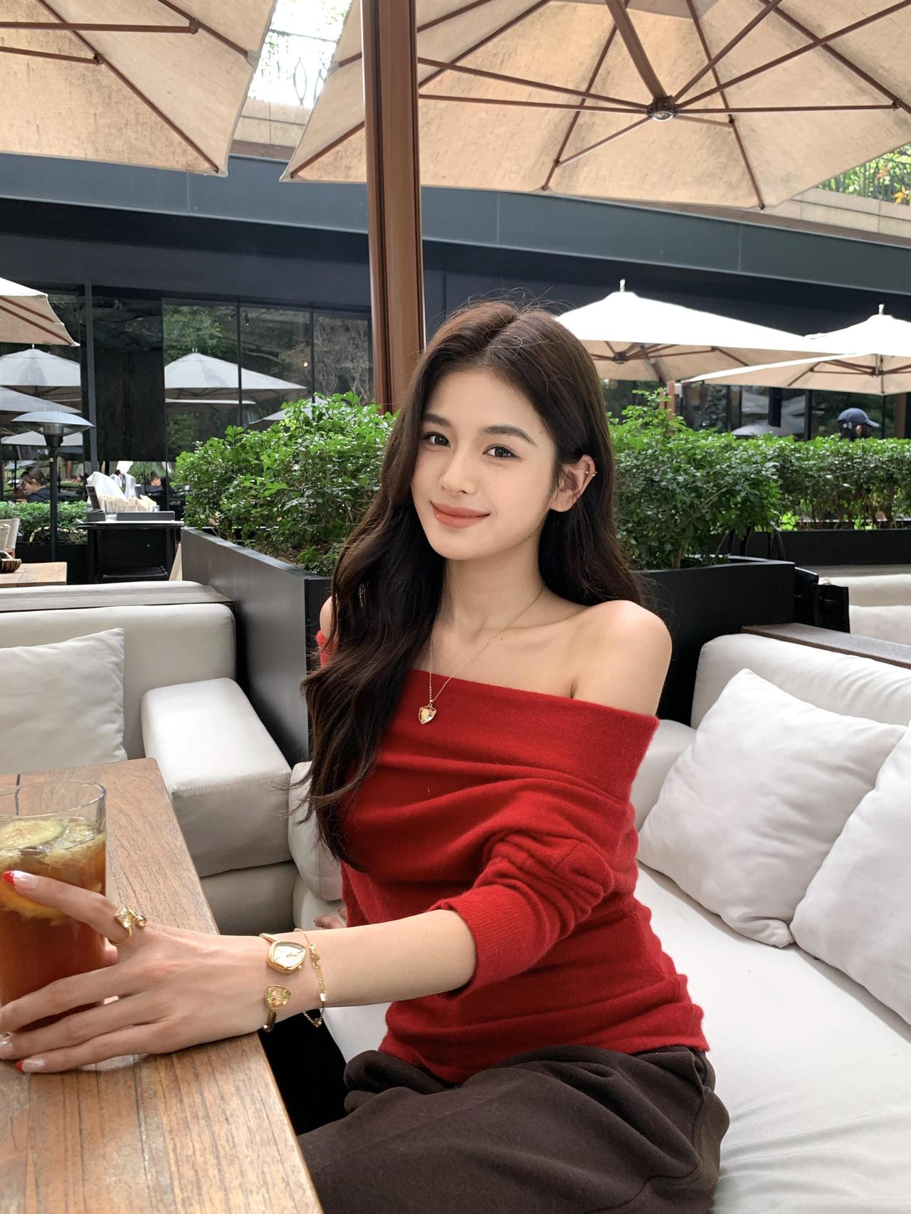莺啼序·露台晴坐 晴阳漫铺露台景,红衫艳过花簇。露肩襟、绒线轻裁,腕间金表凝目。细链垂、心形坠子,指环微闪添风致。倚檀桌、交臂凝眸,发丝轻拂。 转坐柔茵,手拈冰饮,杯沿凝雾凇。伞影下、绿植层层,隔窗听得人语。展眉弯、梨涡浅漾,眸光里、藏着温柔绪。拨发丝、指腹轻撩,晚风初度。 遥看楼檐,云舒天阔,日色斜穿树。记此际、身临闲处,抛却尘烦,只享清欢,这般情趣。金饰明妆,红衫墨发,与秋光相映成趣,任流年、偷换容颜素。 闲来寻乐,缓步露台边,心随景舒。人间百味,最喜这般,慵懒时光驻。算世间、几多忙碌,到此都停,慢品杯中,酸甜甘苦。浮生难得,这般闲暇,一颦一笑皆随性,把烦忧、揉入清风去。露台留得晴光,岁岁相逢,此情如故。