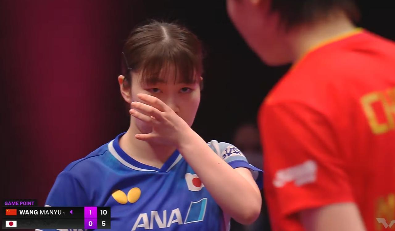 王曼昱和樊振东很像,都成了局点牛牛症! 今天对战大藤沙月, 大藤10:8拿到局点, 日本网友都以为大藤稳赢了。 结果鳗鱼不慌不忙, 左右大角度调球, 还没发力,就连赢4球, 12:10拿下 让日本网友破防了! 他们纷纷留言: 鳗鱼要是正手强攻, 拿下也就算了, 鳗鱼调球什么意思? 哈哈,我觉得也没有别的意思, 就是看大藤胳膊短呗 第二局 鳗鱼习惯大藤发球后,