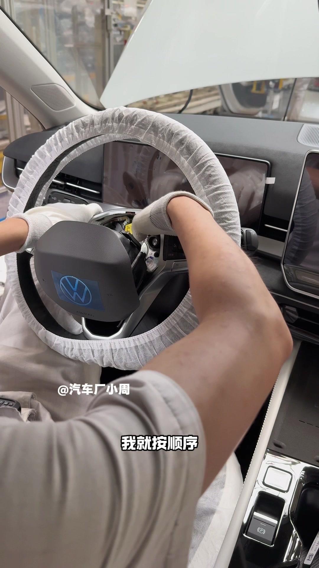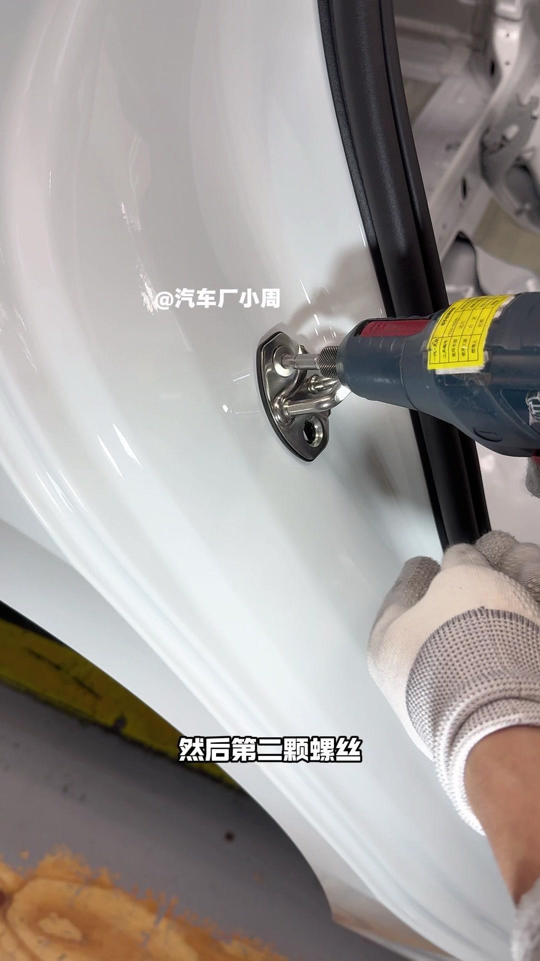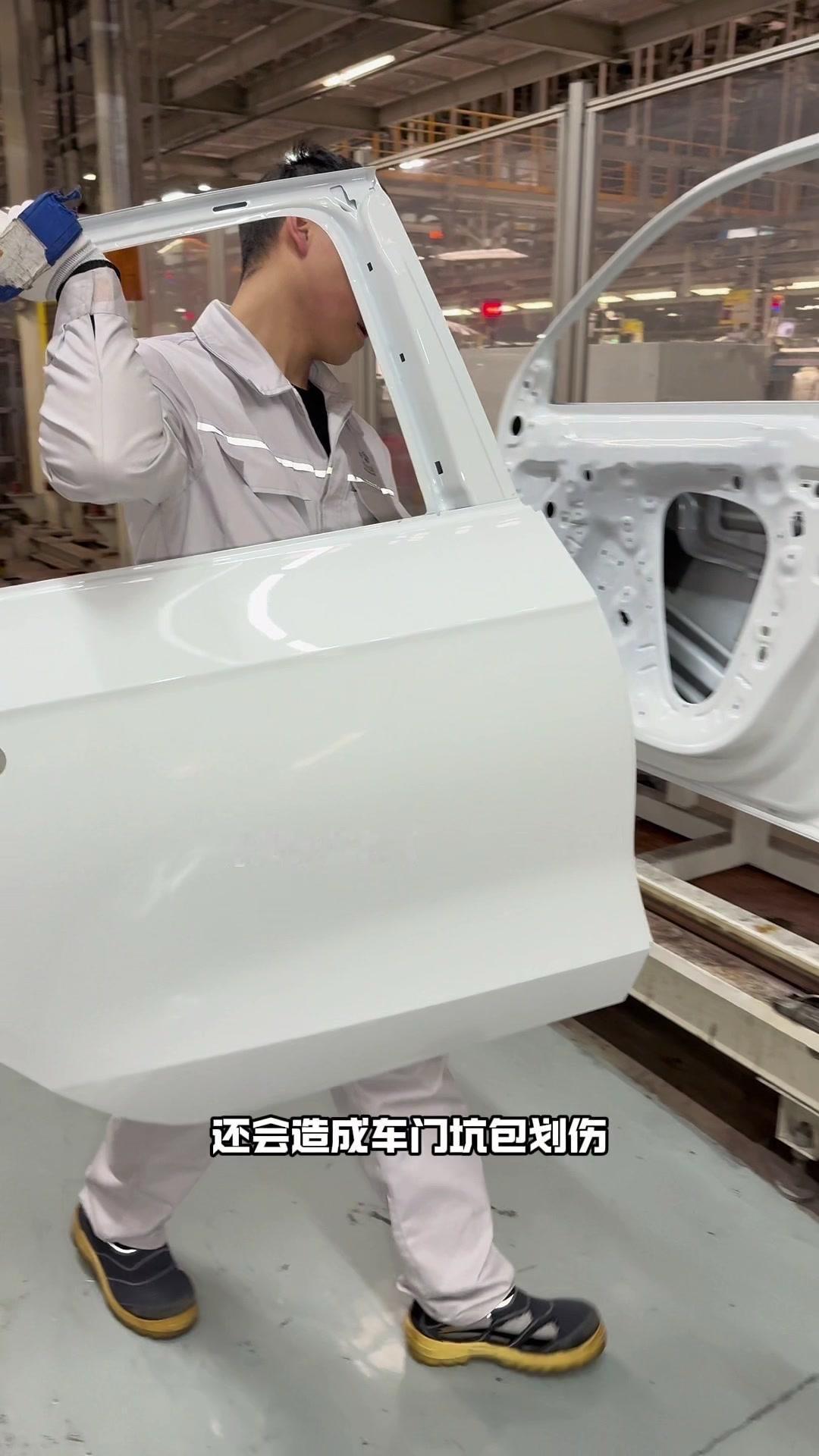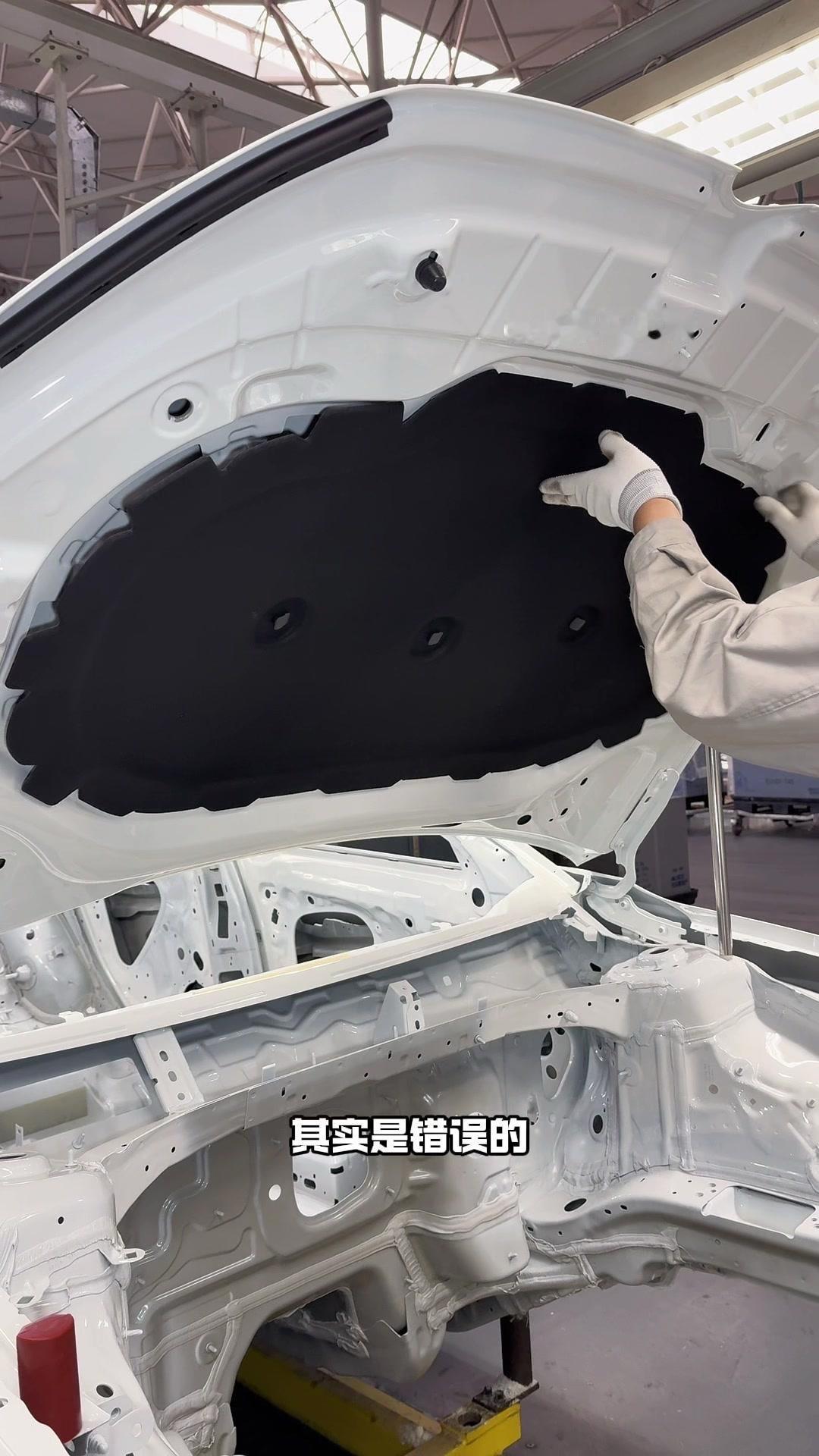 油漆车身到总装车间,第一步把前盖支撑起来,两侧安装两个密封条,起到减震作用。打开后盖安装弹簧和液压支杆,按开关即可自动开,很方便。粘贴尾部标识用进口3M胶,温度控制在30度,滚轮压紧压实,这样车开报废都不掉。 前盖隔热棉别误会是隔音棉,它能防止发动机高温烤黄油漆,发动机和前盖有距离就不用担心变色。车门拆卸是为了方便装配内部零件,避免车门划伤,提升良品率,拆卸后运到分装线装配,再合装到车上。 安装门洞密封条起到密封防水作用,里面是铝条没胶水,用夹紧机夹紧后很难扯掉,这也是外面维修密封条易掉的原因。安装锁扣时先松一颗螺丝,用电枪打到力矩后再拧紧,后盖还需两个螺丝,不然关不上。 电枪虽普通但每月校准力矩,尾部天线负责收音机、导航GPS信号。天窗密封条先装在钣金上,撕红色胶带让3M胶接触,滚轮压实,还得靠排水管排水。汽车进气口和后保险杠泄压口形成空气循环闭环。 雕刻钢架号要确保清晰,拓印两个并贴照片,上牌不用再拓印拍照,用透明胶带密封防生锈。天窗排水管是一体管无二次连接,漏水都难。油管黑色是供油管,白色是供气管,连接碳管。 安全气囊控制器接收碰撞信号,引爆气囊并记录行驶数据。安装天窗用气动设备转移固定,17颗螺丝紧固。主线束展开超100米,岗位辛苦但有序。保险盒、线束整理到位,前部隔音棉有泡沫隔音和防火层,底漆让风挡胶附着力更好。电子真空泵替代传统部件流行开来,油门刹车踏板预紧后连接线束,用专用拧紧机紧固并上传数据15年,进入仪表等安装环节。