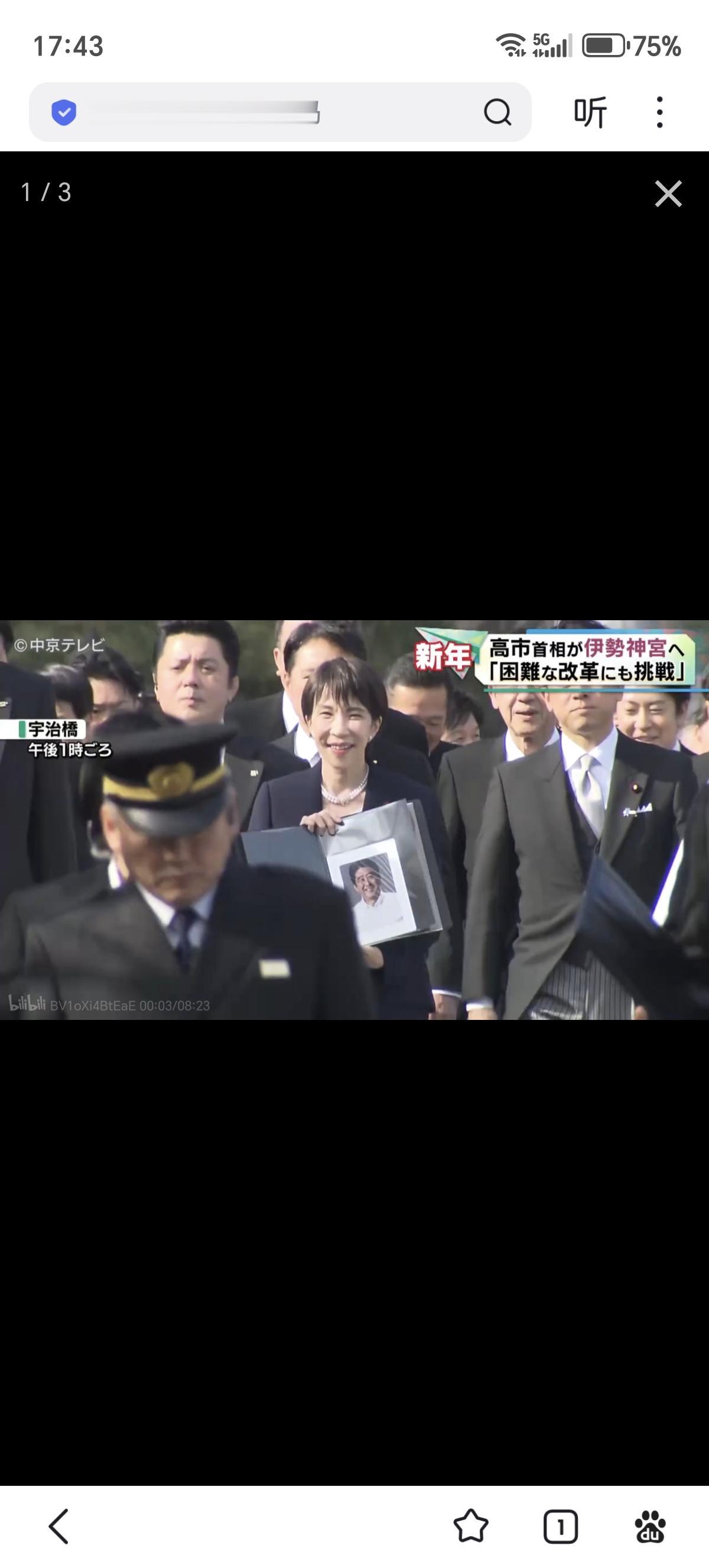 日本新年伊势神宫庆典,高市早苗举个安倍晋三遗像……