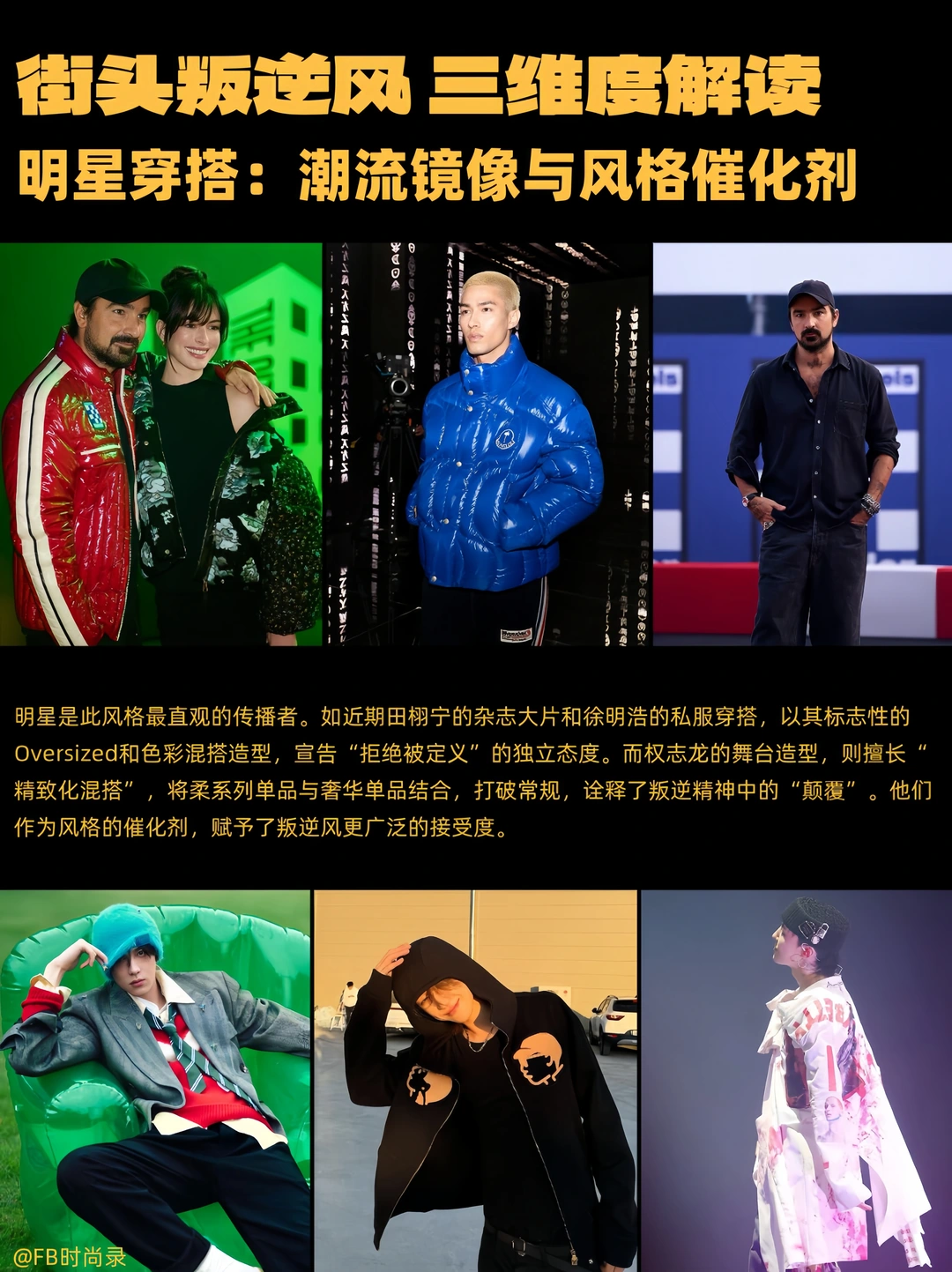 街头叛逆风已从亚文化符号跃升为主流视野中的个性力量。它是一场以服装为载体的态度宣言,要精准把握其精髓,需从明星示范、穿搭要点与代表品牌三个维度解读。