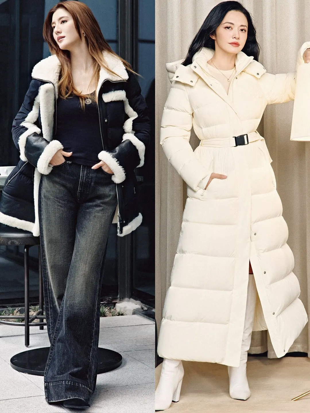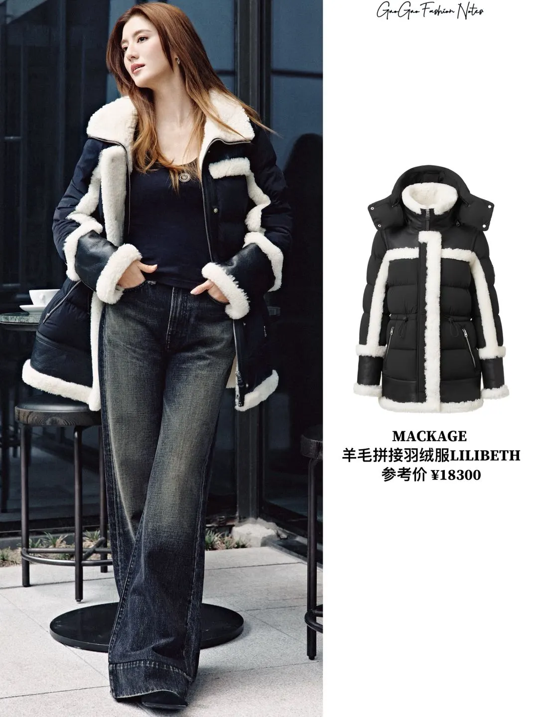 吴千语上身的短款GREER羽绒服,上身超利落,米白色敲显白!而另一款羊毛拼接LILIBETH,黑白色系温柔又高级💫