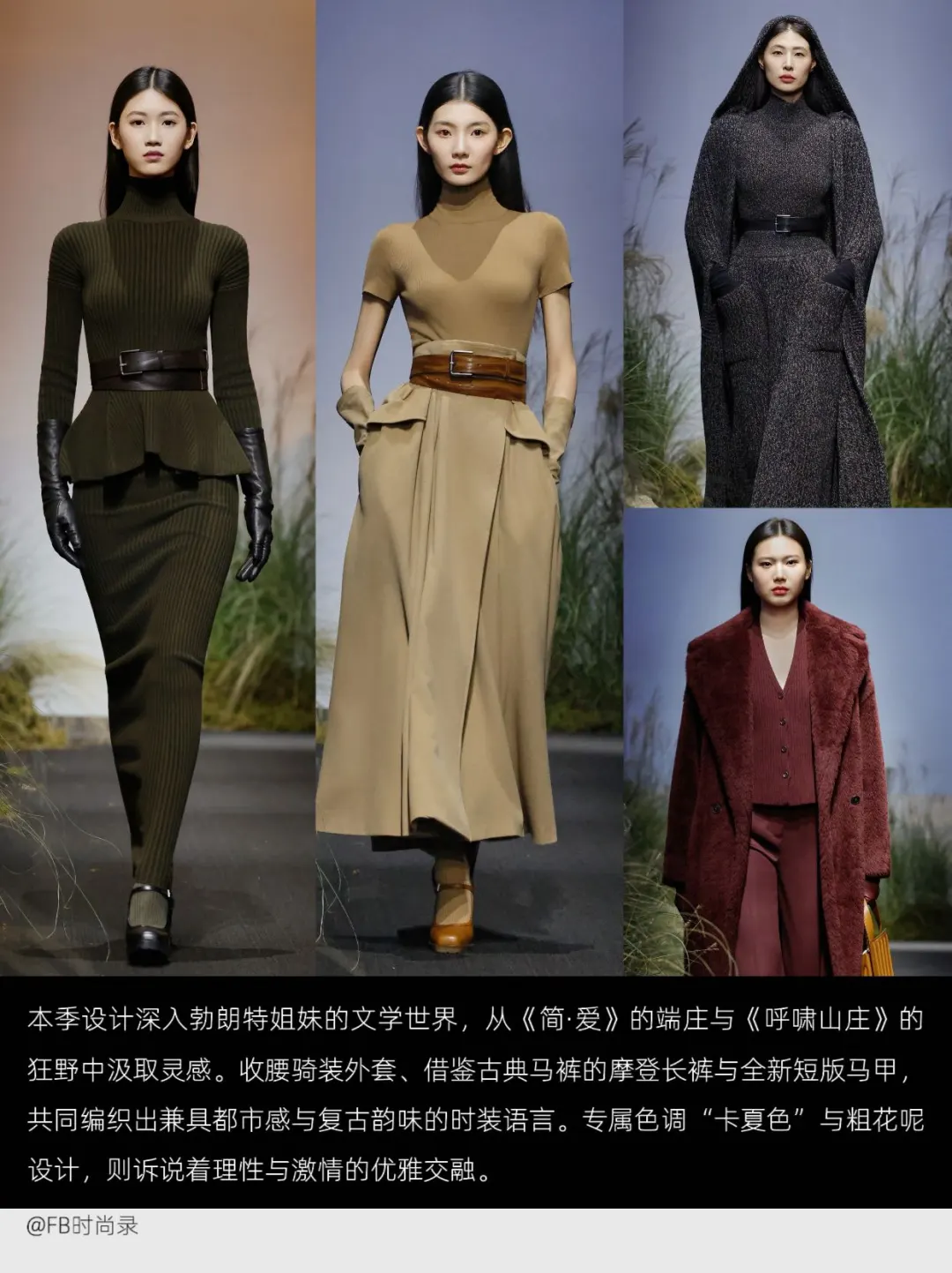 本季设计从勃朗特姐妹的文学世界汲取灵感,将《简·爱》的克制与《呼啸山庄》的狂野融为一体。收腰骑装外套、摩登长裤与短版马甲,共同展现复古与都市的平衡之美;专属“卡夏色”与粗花呢面料,则诠释理性与热情的交融。