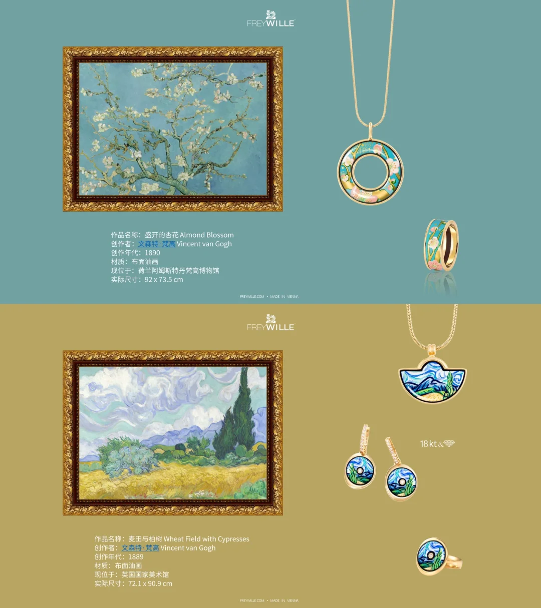 堪称皇室级工艺💫,每件作品都是欧洲工坊纯手工制作!用独家釉彩秘方+24K金粉,经过80多次纯手工高温烧珐琅技术,把莫奈的睡莲、梵高的星月夜等艺术名作都淬炼进珠宝里,光影流转间仿佛戴着小型移动美术馆~