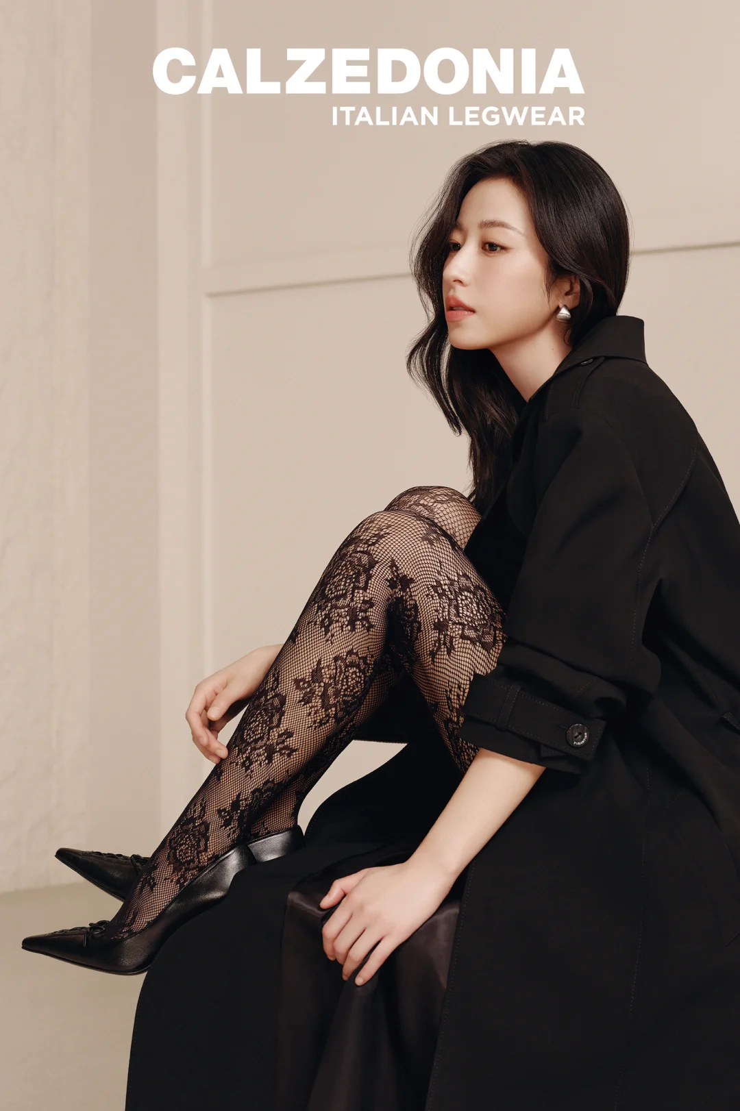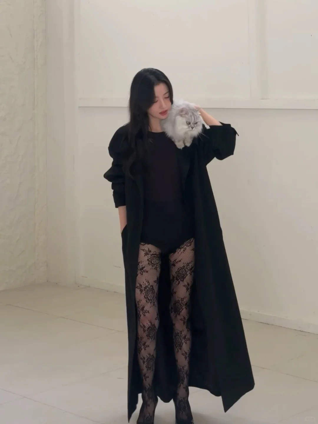 2️⃣ 都市高智感:参考周雨彤的西装或风衣搭配,利落干练的西装+灰色裤袜,大长腿一秒即现;换成风衣+花朵纹理的网状裤袜,则秒变下班后的优雅女性,气场瞬间拉满。