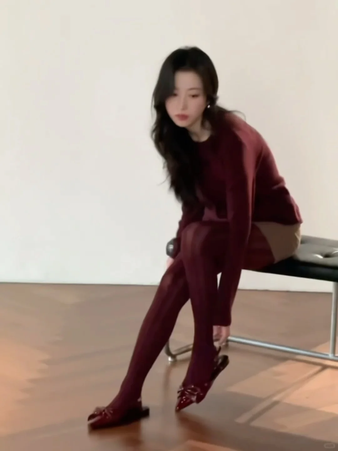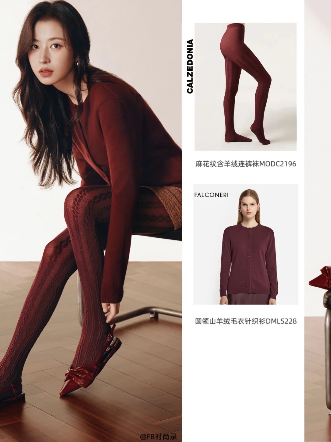3️⃣ 复古风穿搭:酒红色与秋冬最为适配,换上酒红色的麻花裤袜,仿佛刚从油画里走出来,无论是像周雨彤这样搭配同色系上衣,或是换成简约的黑白灰都能轻松为穿搭增加一层复古滤镜。