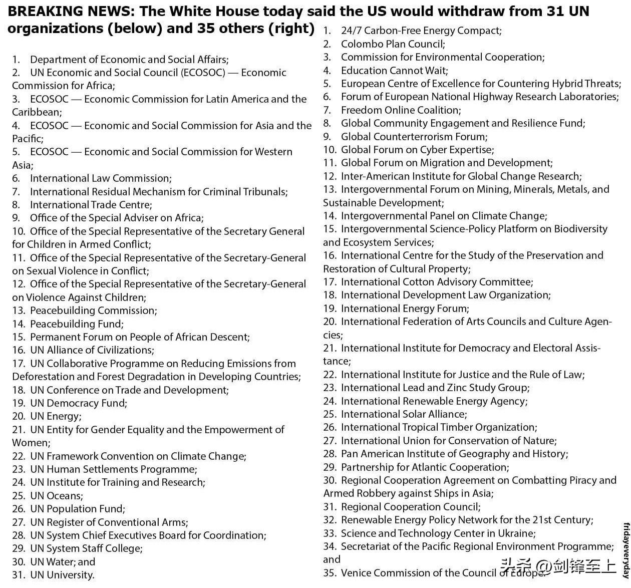 美国退群的完整名单 美国现在由于实力的相对下降 控制整个全球局势已经力不从心 所以进行战略收缩 喊出了美国优先的口号 无论是绑架马杜罗还是觊觎格陵兰岛,亦或是退群 都是这种战略的表现
