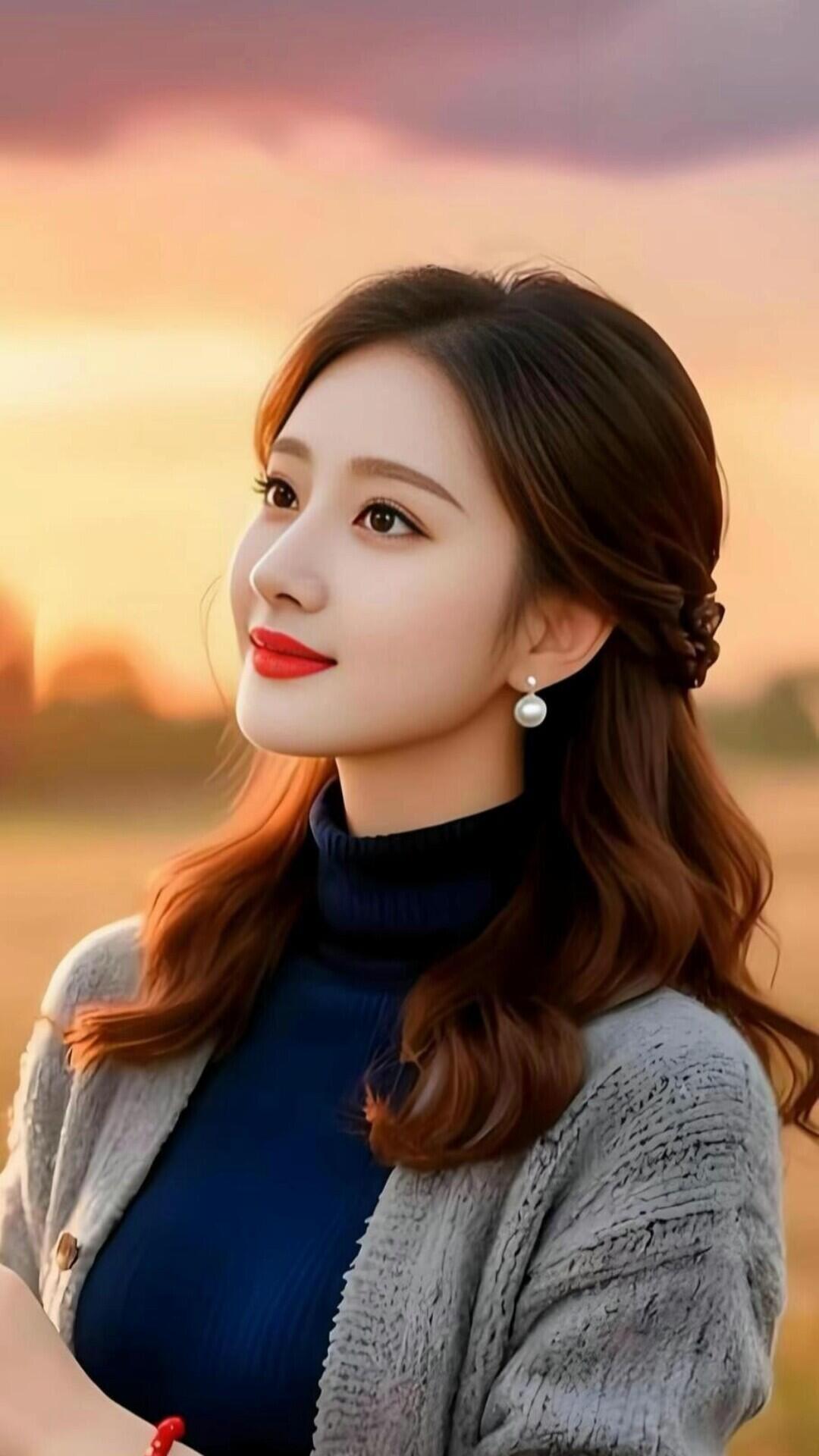 夕阳下的温柔女神,红唇与晚霞相映成趣。
