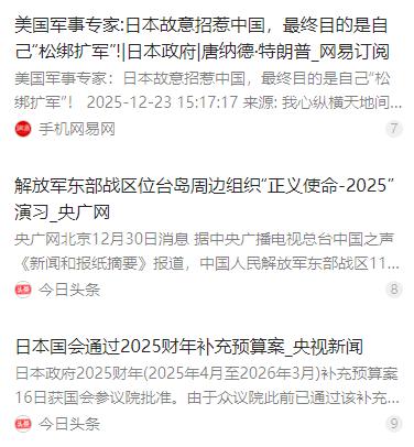 美国一军事专家透露出一惊人内情:“日本故意招惹中国,其实是为了达到另一个目的!他们就想激怒中国,制造紧张空气,好趁机给自己‘松绑扩军’,甚至想把台湾划进自己的‘保护圈’。”狼子野心,昭然若揭!最近听说日本那边动作多了起来,军事上的事一桩接一桩,美国有专家说,日本故意跟中国对着干,其实另有所图。 麻烦看官老爷们右上角点击一下“关注”,既方便您进行讨论和分享,又能给您带来不一样的参与感,感谢您的支持! 要知道,台湾是中国领土不可分割的一部分,这是有充分历史和法理依据的。1943 年的《开罗宣言》和 1945 年的《波茨坦公告》早已明确规定,日本必须将窃取的台湾归还中国,日本在中日邦交正常化时也作出过相关承诺。高市早苗的言论,无疑是背弃了日本的履约义务。 在言论挑衅的同时,日本的军事动作也没闲着。2025 财年,日本的防卫预算迎来了大幅增长,加上补充预算后,整体防卫相关费用达到约 11 万亿日元,提前实现了防卫开支占 GDP 2% 的目标。这笔巨额资金并没有用在维护地区和平上,而是有着明确的进攻性指向。 除此之外,日本还在不断强化西南地区的军事部署,组建专门的岸舰导弹部队并统一指挥,逐步将琉球群岛打造成 “军事堡垒”。同时,日本还积极与美国对接军事指挥系统,频繁开展联合演习,一步步突破 “和平宪法” 的束缚,推动军事正常化。 美国专家一针见血地指出,日本之所以故意跟中国对着干,核心目的就是制造地区紧张氛围,以此为借口给自己 “松绑扩军”,甚至妄图将台湾划入所谓的 “保护圈”。这种以邻为壑的做法,本质上是军国主义思想死灰复燃的危险信号。 面对日本的步步紧逼和外部干涉势力的挑衅,中国绝不会坐视不管。2025 年 12 月底,中国人民解放军东部战区启动了代号为 “正义使命 - 2025” 的联合演习,在台湾海峡及台岛周边多个海空域开展实战化演练。 演习中,东部战区调集了陆军、海军、空军、火箭军等多军兵种兵力,开展了远程火力实弹射击、对海突击、防空反潜、联合封控等多个科目演练。陆军远箱火分队精准打击预定海域,海军驱护舰编队占领有利阵位,空军战机编队实施远程奔袭,充分检验了联合作战能力。 此次演习是对 “台独” 分裂势力和外部干涉势力的严重警告,彰显了中国捍卫国家主权和领土完整的坚定决心。与此同时,中国驻日大使馆也通过社交平台发声,援引《联合国宪章》中的 “敌国条款” 警告日本,若胆敢武力介入台海局势,将构成侵略行为。 《联合国宪章》的 “敌国条款” 明确规定,德意日等法西斯战败国若再次实施侵略政策,中法英美等联合国创始会员国有权直接采取军事行动,无需安理会授权。中方的这一表态,划定了清晰的红线,也让国际社会看清了日本危险行径的本质。 面对中方的严正警告,高市早苗不仅没有撤回涉台错误言论,反而继续推进西南诸岛的导弹部署和联合军事演习,丝毫没有收敛的迹象。但这种强硬姿态背后,日本已经开始品尝到对立策略带来的苦果,经济层面的困境日益凸显。 从历史来看,日本作为二战战败国,本应深刻反省侵略历史,坚守和平发展道路。但近年来,日本不断突破防卫政策限制,解禁集体自卫权,大幅增加防卫预算,其重新武装的动向已经引起国际社会的广泛警惕。 《联合国宪章》和日本现行宪法都明确规定,日本应放弃以武力解决国际争端。但现在日本的一系列举动,正在背离和平主义道路,向 “能战国家” 转型,这不仅是对二战后国际秩序的挑战,也给东亚地区的和平稳定带来了严重威胁。 亚洲国家对日本的军国主义历史有着深刻记忆,对其军事野心始终保持高度警惕。日本试图通过制造外部矛盾来实现扩军的图谋,只会让自己陷入孤立境地,损害与邻国的互信。这种危险的战略赌博,最终只会得不偿失。 中国始终坚持走和平发展道路,但在国家主权和领土完整问题上,绝不会有任何妥协退让。中国驻日使馆援引 “敌国条款” 的警告,已经清晰表明了中方的底线。东部战区的联合演习,也用实际行动证明了中国军队有信心、有能力挫败任何分裂国家的图谋。 日本当前面临的经济困境已经说明,对抗没有出路,合作才是共赢之道。与其花费巨额资金扩军备战、制造紧张,不如将精力放在改善经济、增进民生上,通过对话协商与邻国建立互信。 美国专家的爆料让日本的狼子野心昭然若揭,但其精心策划的 “松绑扩军” 之路,注定会充满阻力。历史潮流浩浩荡荡,任何企图分裂他国领土、破坏地区和平的行径,都将遭到国际社会的反对,最终必将自食恶果。 台湾问题是中国的内政,任何外部势力都无权干涉。日本若执意在涉台问题上越界挑衅,无视中方的严正警告,必将遭到坚决反制。希望日本能认清形势,悬崖勒马,回到和平发展的正确轨道上来,否则必将承担由此带来的一切严重后果。