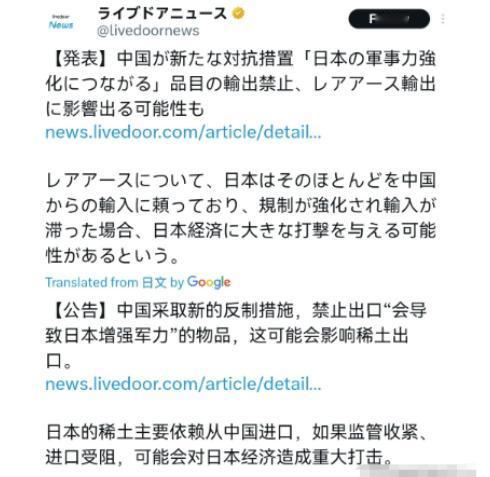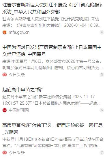 没想到日本反应情绪如此之大!在我们严格管控军民两用物资对日本进行反制之后,日本国内情绪非常激动。有日本网友就说,这样的管制措施比当年欧洲对付中国的瓦森纳协议管制还要严格。中国对日本禁运的军民两用商品,目录就列了一百多页。有人就表示,中国这是正式宣告,要么高市早苗收回她关于台湾的讲话,要么高市下台,中日关系没可能改善。 麻烦看官老爷们右上角点击一下“关注”,既方便您进行讨论和分享,又能给您带来不一样的参与感,感谢您的支持! 2026 年 1 月 6 日,中国商务部发布第 1 号公告,宣布加强对日本两用物项出口管制,这一举措直接引发日本朝野震动,各类情绪宣泄在网络和现实中蔓延。 日本网友炸开了锅,有人盯着 168 页的管制目录直呼夸张,认为比当年西方国家遏制中国的瓦森纳协定还要严格,更有极端声音将其类比为珍珠港事件前美国对日本的石油禁运。 这场风波的根源,是日本首相高市早苗一系列触碰中国底线的操作。2025 年 4 月,她率团窜台与赖清德、蔡英文密会,后续又在国会发表涉台错误言论,暗示要将 “台湾有事” 与日本 “存亡危机事态” 挂钩,甚至妄图武力介入台海。 高市早苗长期是 “台湾有事即日本有事” 的支持者,多次公开表达对 “台独” 势力的支持,其窜台行径和涉台言论,严重违背《中日联合声明》确立的一个中国原则,粗暴干涉中国内政。 中国的反制绝非一时兴起,而是对日本挑衅的正当回应。管制措施明确禁止所有两用物项对日本军事用户、军事用途出口,涵盖高性能复合材料、精密机床、镓锗等关键材料,精准卡住日本产业命脉。 日本国内情绪彻底分裂,除了恐慌和指责,也有清醒网友指出,是高市早苗政府的挑衅行径才招致反制,如今的局面完全是自食其果,怨不得别人。 日本的高端制造业和军工产业,早就深度依赖中国供应链。全球 92.3% 的稀土冶炼分离产能在中国,日本汽车业所需稀土永磁材料 90% 来自中国,半导体产业的镓依赖度超 85%,锗更是接近 100%。 管制落地后,丰田电动车产能已削减 20%,信越化学、SUMCO 等半导体巨头面临原料库存仅够维持两个月的困境,整个半导体行业协会紧急召集企业评估损失、商讨应对办法。 索尼、东京电子等企业更是焦头烂额,东京电子 2026 财年来自中国市场的营收占比达 38.6%,远超本土和北美市场总和,如今原料断供和订单减少的双重压力让其举步维艰。 日本政府彻底陷入两难困境。让高市早苗收回言论或下台,必然得罪庞大的右翼势力,影响执政根基;可要是强硬对抗,产业损失会持续扩大,民众不满情绪也会不断累积。 更让日方头疼的是,向美国求助并未得到有效回应,所谓的盟友在关键时刻根本靠不住。日本曾砸下 550 亿日元试图构建替代供应链,却因技术、成本等问题收效甚微。 中国外交部早已明确表态,台湾问题是中国核心利益中的核心,是不可逾越的红线。1972 年《中日联合声明》中,日本政府已明确承诺尊重一个中国原则,如今却屡屡食言。 此次管制完全符合《中华人民共和国出口管制法》,也遵循国际通行的防扩散原则,并非泛化的经济制裁,而是精准打击日本军国主义复活的技术可能。 日本前首相鸠山由纪夫曾评价高市早苗是 “爱乱吠的小狗”,如今她玩火挑衅,不仅让中日关系陷入低谷,更让日本产业付出沉重代价,堪称 “搬起石头砸自己的脚”。 事实上,日本产业对中国的依赖早已深入骨髓。除了战略材料,其 70% 的头孢类抗生素原料药、近乎全部的汉方药原料都来自中国,1406 个品类的进口额超 50% 依赖中国市场。 有日本经济专家直言,日本高端制造业就像建在沙滩上的城堡,中国就是支撑城堡的地基,如今地基动摇,城堡自然岌岌可危,产业链迁移至少需要 5 年和 5.4 万亿元人民币,几乎不具备可行性。 中国的反制也倒逼自身产业升级,在光刻胶等领域,国产产品已逐步实现突破,大基金三期更是投入巨资扶持相关研发,加速摆脱对外依赖。 这场博弈也让全球看到,“脱钩断链” 不符合任何一方利益。日本超级计算机模拟显示,若中国断供 80% 零部件两个月,日本 GDP 将损失 53 万亿日元,相当于其 GDP 的 10%。 中日作为亚洲两大经济体,产业深度绑定又相互制衡。中国需要时间突破高端技术瓶颈,日本离不开中国的关键材料和庞大市场,对抗只会两败俱伤。 日本若想改善中日关系,没有其他捷径可走,必须正视历史和现实,立即纠正涉台错误言行,恪守中日四个政治文件原则,拿出实实在在的行动,才能重建互信。 台湾问题纯属中国内政,任何外部势力干涉都是徒劳。中国政府和人民捍卫国家主权和领土完整的决心、意志和能力不容低估,任何挑衅行为都将遭到有力回击。