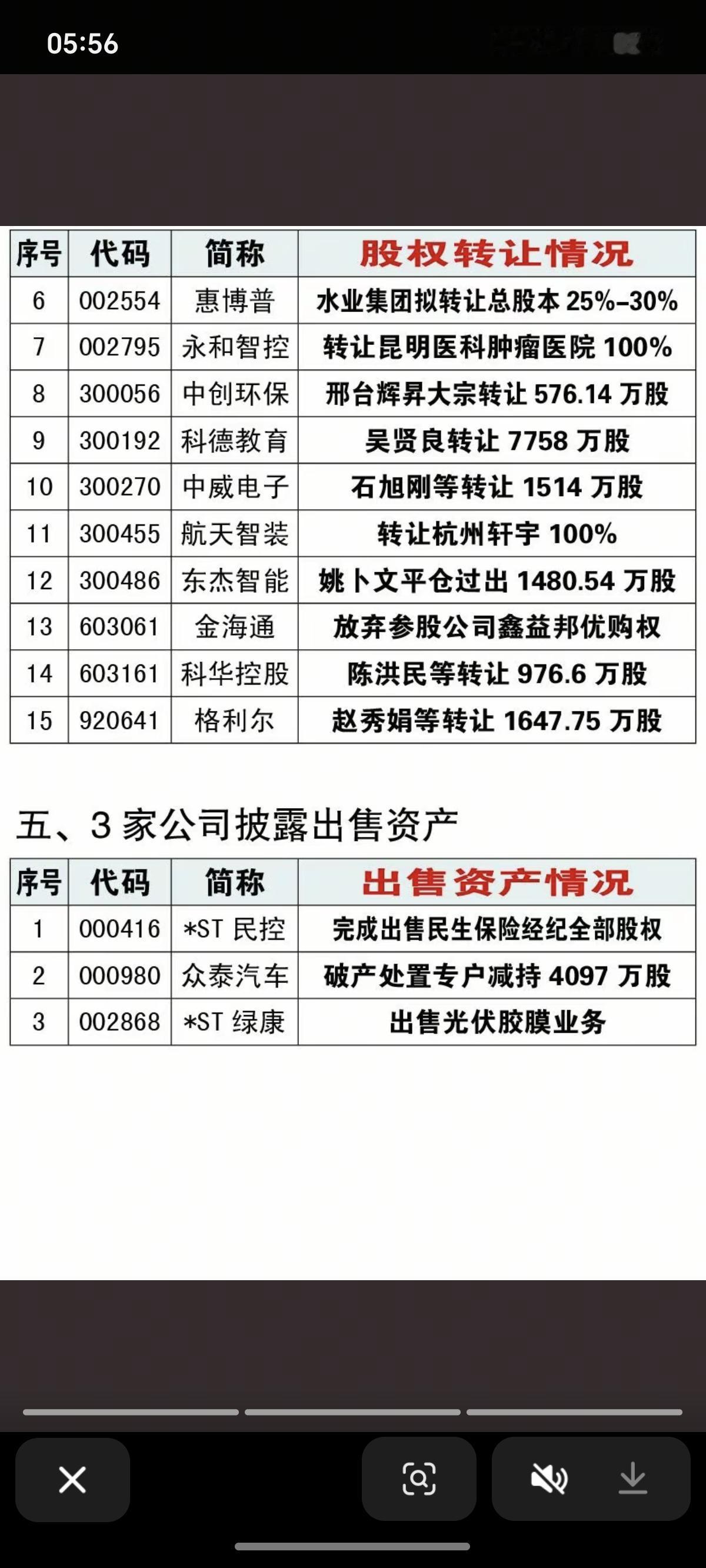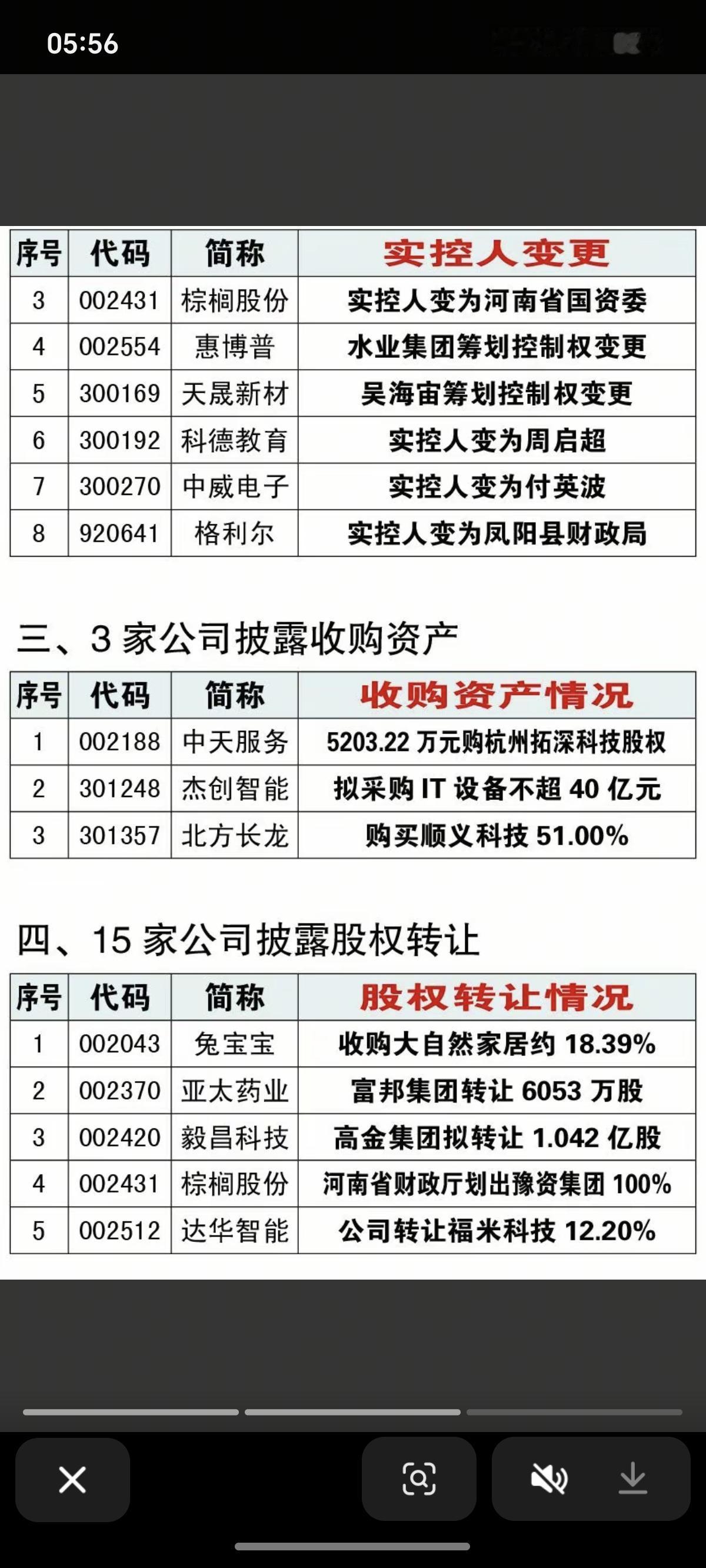 1.09周五 最新:资产重组,实控人变更,股权转让公告! 一、10家公司披露资产重组,做大做强 二、8家公司实控人变更, 三、3家收购资产,改善盈利 四、15家公司股权转让,寻求合作 五、3家公司披露出售资产