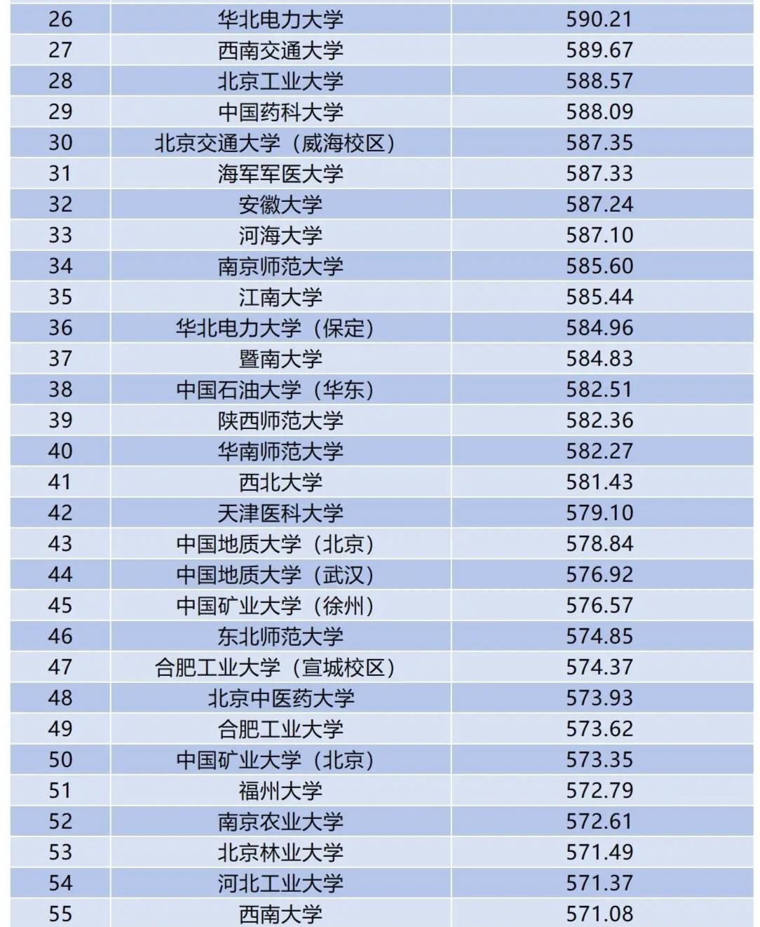 2025年211大学(非985)高校理科全国录取线平均分排名