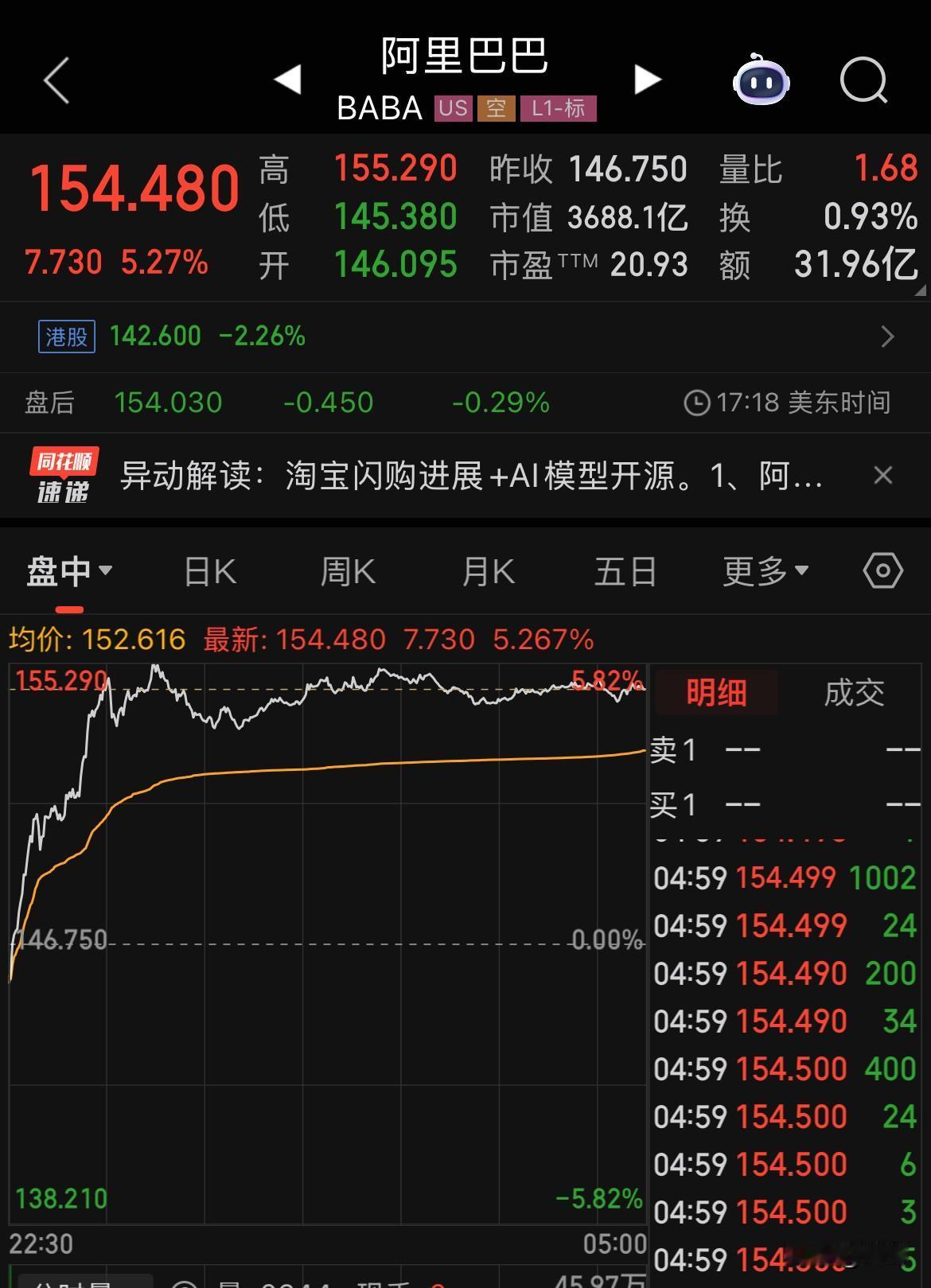阿里巴巴美股大涨5.27%。 源于同样关于闪购要做市场第一的消息,港股大跌超过3%并创半年新低,美股却大涨5.27%,这背后的逻辑是什么呢? 如果今日港股阿里巴巴不同步上涨的话,那么真的会让人怀疑某些神秘力量的故意做空行为的,必定昨日南下资金罕见的净卖出了50亿元。而结合每当咱们这边放假港股就大涨的“巧合”,世界上最大的空头是谁不用多说吧?