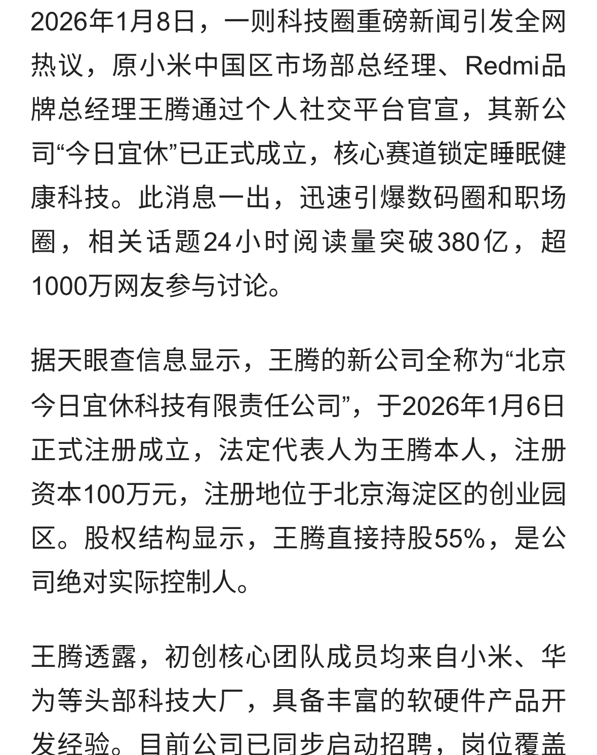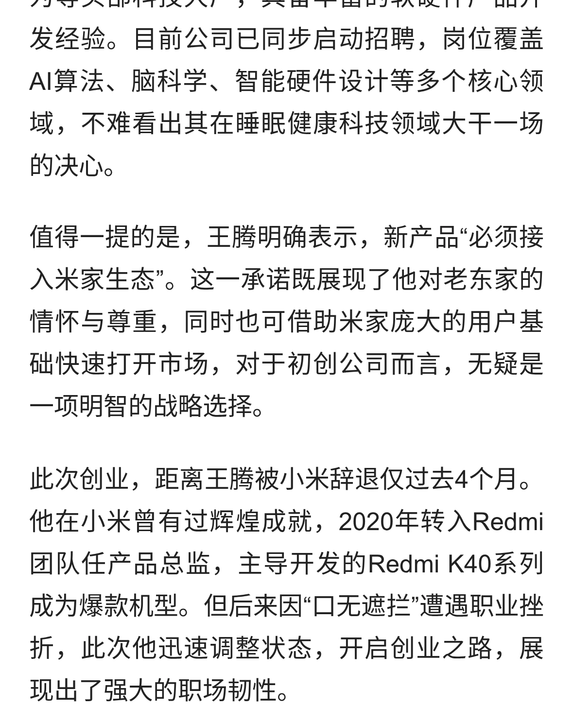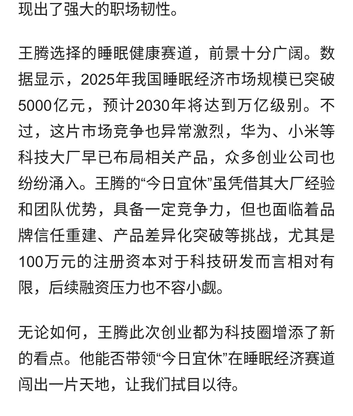 原小米高管王腾成立新公司,瞄准万亿睡眠经济赛道