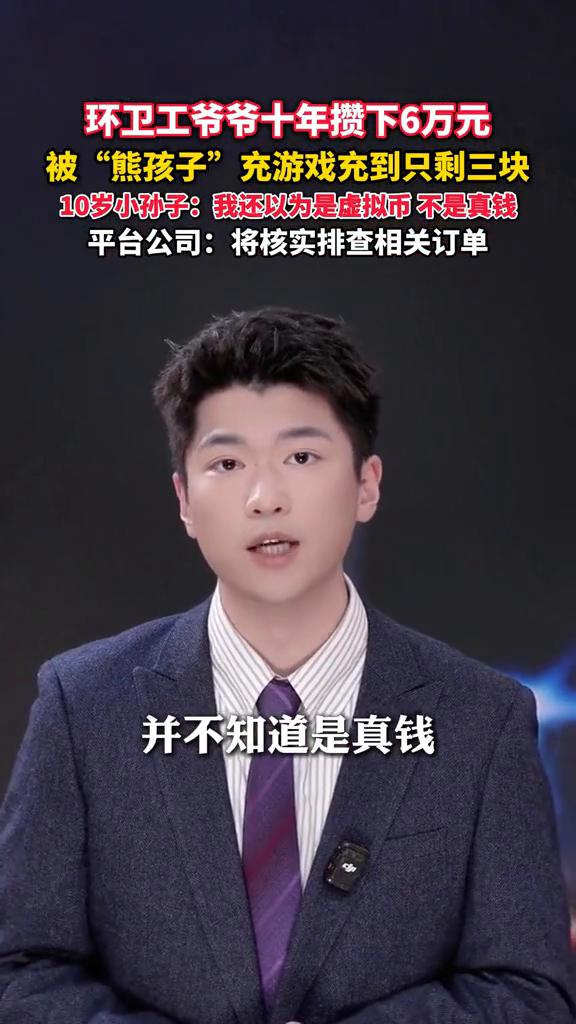 环卫工爷爷十年攒下6万元,被"熊孩子"充游戏充到只剩三块。 10岁小孙子:我还以为是虚拟币不是真钱。平台公司:将核实排查相关订单。 10岁孙子在《和平精英》买了160多次皮肤装备,花光环卫工爷爷省吃俭用十年攒下的6万养老钱。奶奶得知后当场气晕。 孙子说他以为花的是虚拟币,并不知道是真钱。在过去5个月里,他偷偷用小天才电话手表的卡插入闲置手机,再按陌生链接指引"疯狂氪金"。花到最后,爷爷银行卡上的6万元只剩下3块。目前,快手平台回应称,将对相关订单进行核实排查。