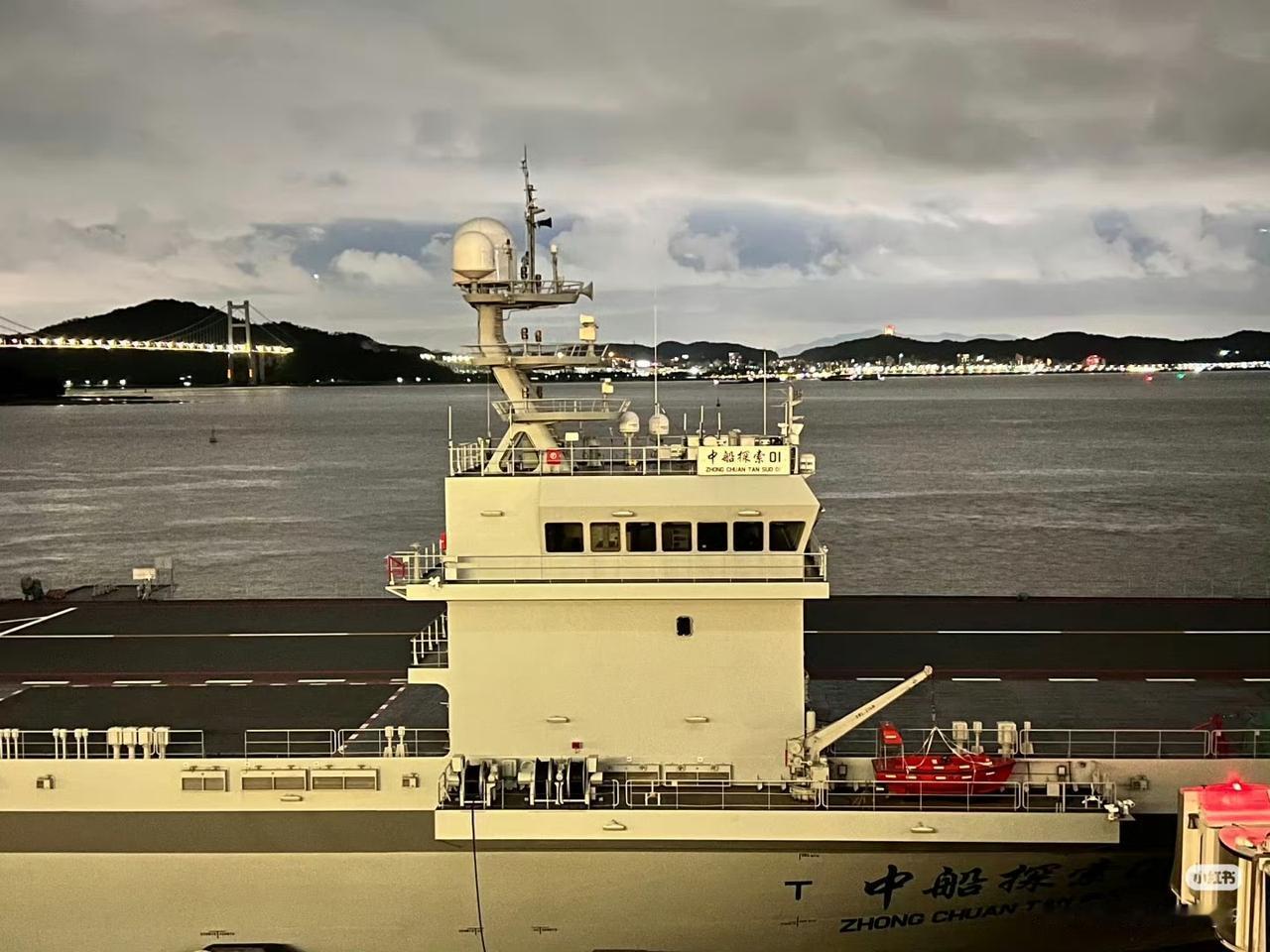 中船探索一号真容来了,三舰岛详细可见。前舰岛是驾驶舱,掌舵船的安全航行控制。中舰岛是指挥中枢,航电、雷达、通信、战机调度等等都在这里。集成栀杆可同时追踪30多个目标。后舰岛是动力系统排烟道。 三舰岛在电磁兼容角度是避免了通信、雷达等电子设备过度密集而产生的电磁干扰,提升各系统的稳定性,也避免了动力系统烟气与热辐射对设备的影响。