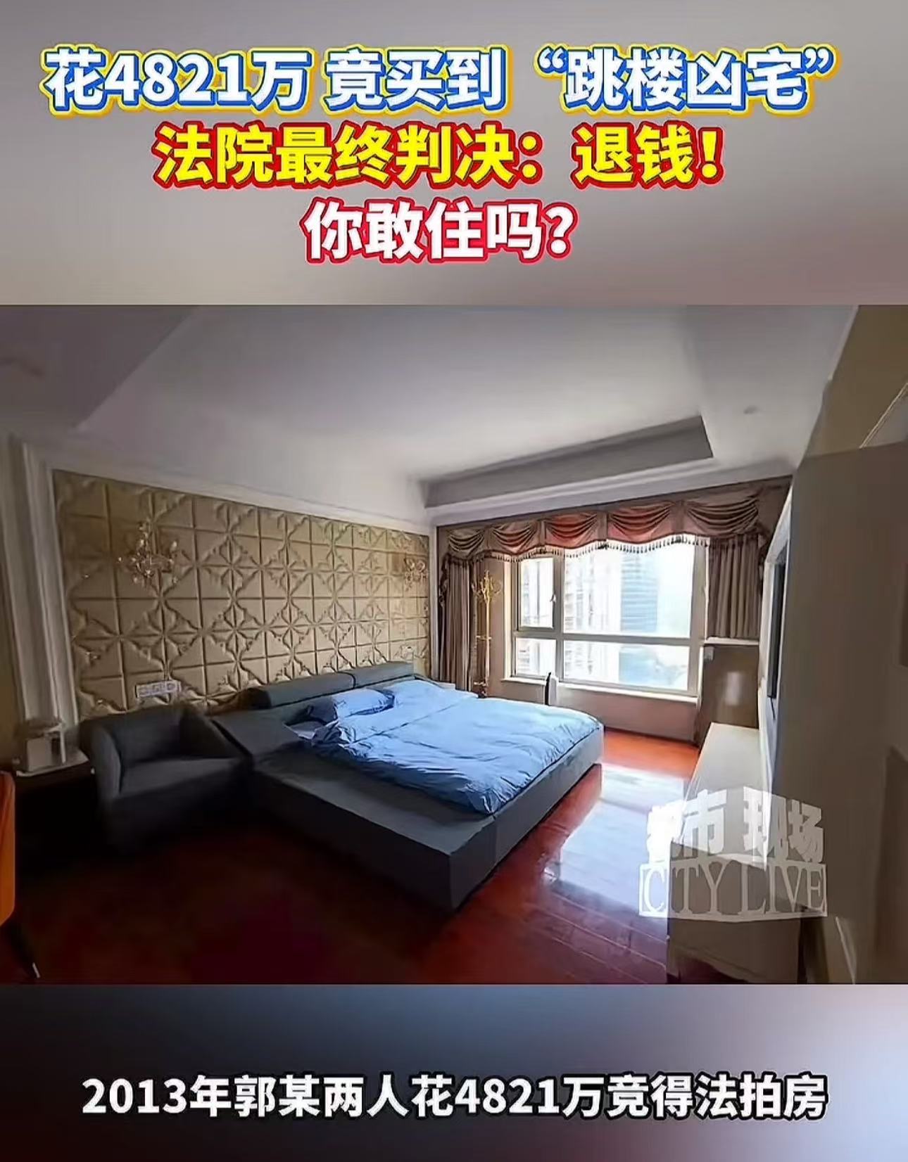花4800多万拍下深圳豪宅,结果过户才发现——这房子竟是一处“凶宅”!一年多前,原房主的女儿就在这套房里跳楼身亡。买家知道后当场傻眼:谁敢住进发生过非正常死亡事件的房子?更气人的是,当初法院拍卖公告里压根没提这事儿,而且还拒绝退款!
