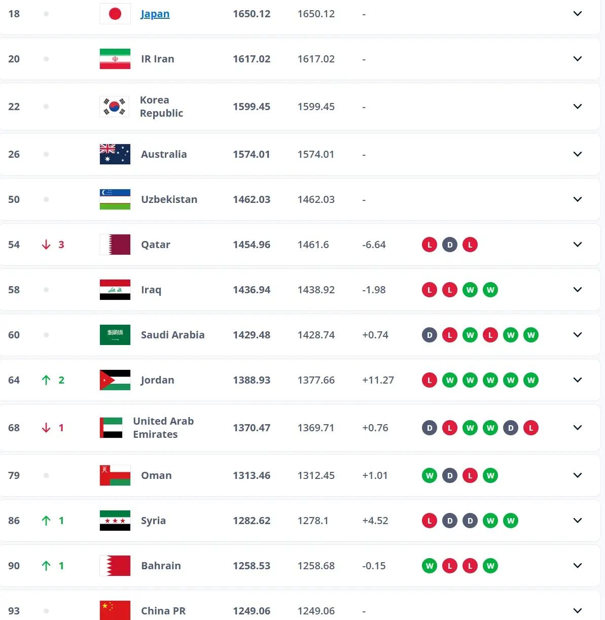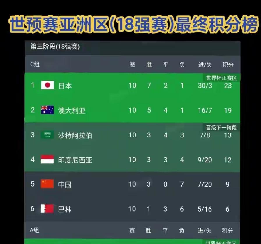 网友翻出20多年前的2001年的亚洲区预选赛,中国队的战绩。 在亚洲区十强赛B组中国队的战绩,是以6胜1平1负小组第一名成绩晋级决赛圈。 在今届亚洲区预选赛中,中国队小组赛中惨遭淘汰出局。 现国足世界排名93,远远落后于2001年战胜过的对手。