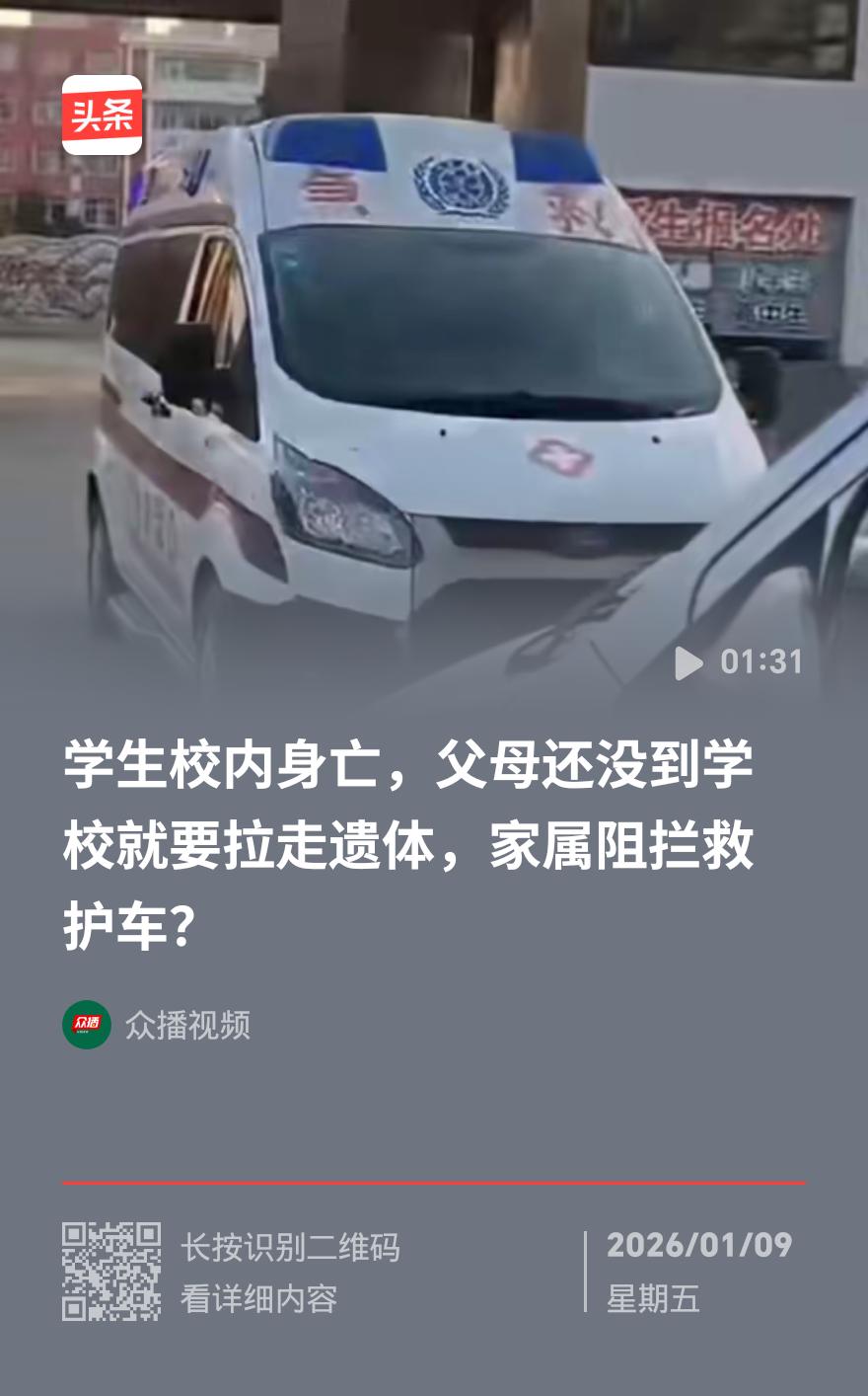 河南新蔡一学生校内身亡 家长未到竟欲拉走遗体?校长回应引众怒 河南新蔡县今是清华园学校的一桩事,看得人心里直发紧。 前一天还和父母有说有笑的孩子,突然传来校内身亡的噩耗。远在外地的家长接到消息,心都碎成了渣,疯了似的往学校赶。谁料还没等家长踏进校门,学校那边竟然已经叫了救护车,准备直接拉走孩子的遗体。幸好同行的亲友反应快,开着货车拦在车前,这才没让悲剧雪上加霜。 记者第一时间联系涉事校长求证,对方只含糊承认了学生身亡的事实,被问到为啥急着处理遗体时,却只丢下一句“电话里不方便说”,便匆匆挂断了电话。 这操作实在让人想不通!按规矩,遗体处置必须经过家属同意,学校本该第一时间保护现场、安抚家属情绪,配合后续调查。可如今倒好,家长连孩子最后一面都没见着,学校就急着“善后”,这难免不让人浮想联翩。 孩子是每个家庭的命根子,出了这么大的事,学校的态度本该坦诚透明。遮遮掩掩、含糊其辞只会加剧家属的痛苦,引发更多猜忌。 目前事件还在进一步调查中,只盼官方能早日查明真相,给悲痛的家长一个公道,也给社会一个交代。河南学校失火 学生不幸身亡 河南学生跳楼