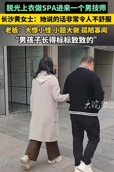 湖南长沙,一女子去做全裸SPA,店里竟然给她安排了一个男技师,女子拒绝,老板立马变脸,嘲讽女子大惊小怪,小题大做,孤陋寡闻,说男技师才20岁,能做女子的儿子了,长得标标致致,压根看不上女子,去医院看病也有男医生,去足浴也有男的。可把女子气坏了,电话把丈夫摇来,给自己出气。老板却义正言辞:我没错,男的给女的按,女的给男的按,这不正常嘛?我们是正规按摩。 事发当天,黄女士在朋友推荐下,来到长沙一家打着“高端私密SPA”“身心疗愈”旗号的养生会所。 店内装修偏暗,主打“沉浸式体验”,工作人员在介绍项目时,反复强调“全身放松”“无干扰服务”,却并未明确提及技师性别。 黄女士此前也做过类似项目,理所当然地认为会由女技师服务,便没有多问。 可当她换好衣服、准备进入房间时,推门进来的却是一名年轻男性技师。对方看起来二十岁出头,戴着口罩,语气平静地表示将由自己负责本次服务。 黄女士当场愣住,随即明确拒绝,表示自己无法接受全裸状态下由男技师操作,希望更换女技师。 让她没想到的是,技师并未道歉离开,而是出去请来了老板。老板一进门,态度便明显不耐烦,不但没有安抚情绪,反而语气带刺,直言黄女士“太大惊小怪”“思想太保守”。 更令黄女士难以接受的是,老板随后的一番话近乎嘲讽—— “我们这儿很多客人都不介意,男技师才二十岁,能当你儿子了,人家长得标标致致,还真未必看得上你。你去医院看病不也是男医生吗?去足浴城也有男的,怎么到这儿就不行了?” 这一番话,彻底点燃了黄女士的怒火。她当即表示,医院看病和全裸SPA性质完全不同,不能混为一谈,而足浴项目是否接受男技师,也应当事先告知,由消费者自主选择,而不是临时“强塞”。 然而老板却越说越激动,反复强调“我们是正规按摩”,还质问黄女士:“男的给女的按,女的给男的按,这不是很正常吗?你要是接受不了,是你自己的问题。” 情绪彻底失控之下,黄女士当场掏出手机,手都在发抖,直接给丈夫打了电话。 她一边压着嗓子,一边带着哭腔把事情简单说了一遍。十多分钟后,丈夫匆匆赶到店里,一进门就察觉气氛不对,妻子脸色发白,明显受了委屈。 丈夫了解情况后,语气立刻强硬起来,当着技师和老板的面质问:“你这是干的啥买卖?全裸SPA,安排男技师,事先不说清楚,还反过来嘲讽顾客?你们这叫正规?” 老板却丝毫没有退让的意思,双手一摊,反复强调自己“没做错”,还称黄女士是“自己想多了”。 丈夫越听越气,直接放话:“你信不信我现在就举报你?工商、卫健、消协,一个都不会少。”他要求老板当场向妻子道歉,并全额退款。 可老板态度依旧强硬,语气冷淡地回应:“道歉不可能,我们流程没问题,最多只能退一部分钱。” 双方你来我往,争执不断,场面一度十分尴尬。店里其他顾客纷纷侧目,工作人员站在一旁不敢插话。 黄女士站在丈夫身后,情绪仍未平复,她觉得自己不是来“闹事”的,而是被逼到了不得不为自己讨个说法的地步。 事件很快被黄女士发到网上,引发大量网友关注与讨论。评论区迅速分成几派。 一部分网友坚定站在黄女士一边,认为商家存在明显的告知义务缺失。“全裸SPA是否由男技师服务,必须提前明确说明,否则就是侵犯消费者选择权” “老板的言语已经构成侮辱”“把医院医生和SPA技师类比,完全是偷换概念”。不少女性网友直言,真正让人不适的并非技师性别,而是被迫接受和被轻视尊重的感觉。