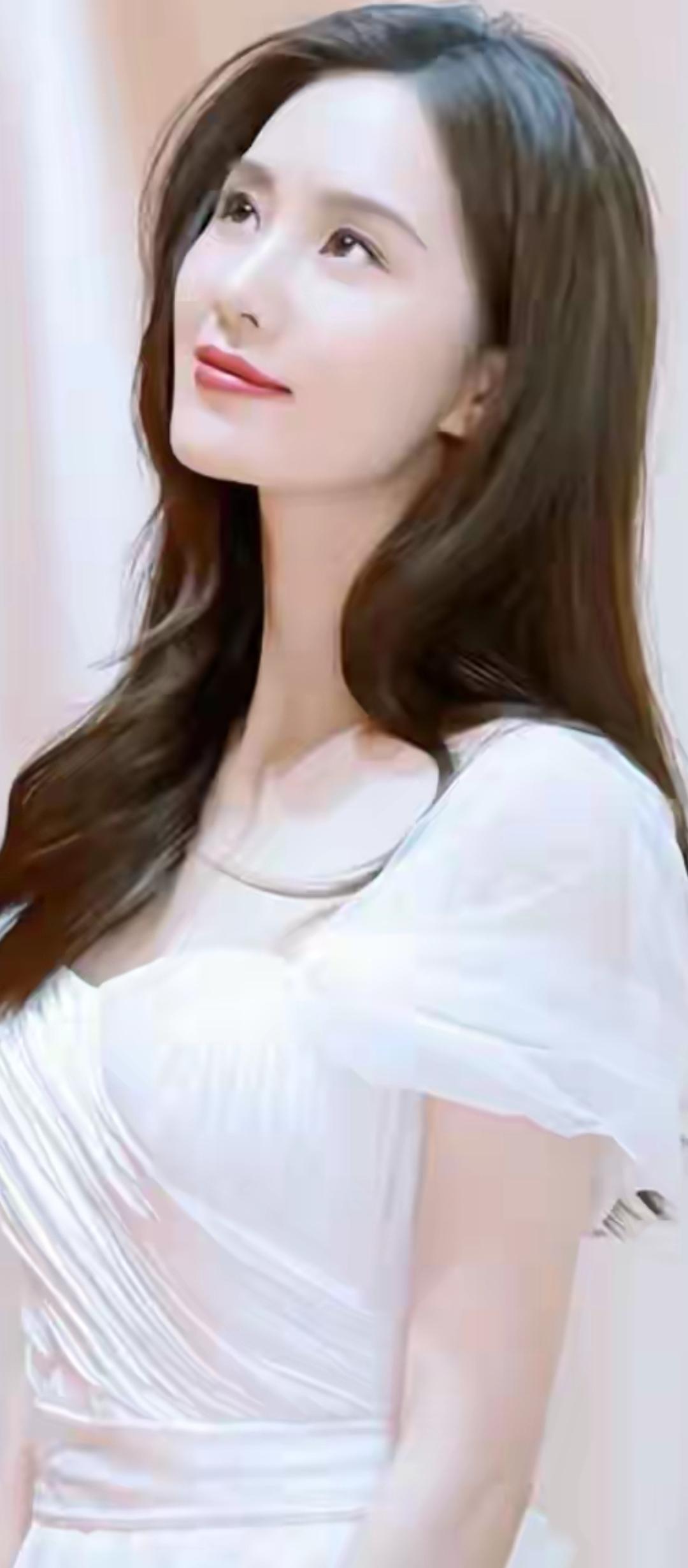 优雅气质,白衣飘飘,精致妆容,自信微笑。