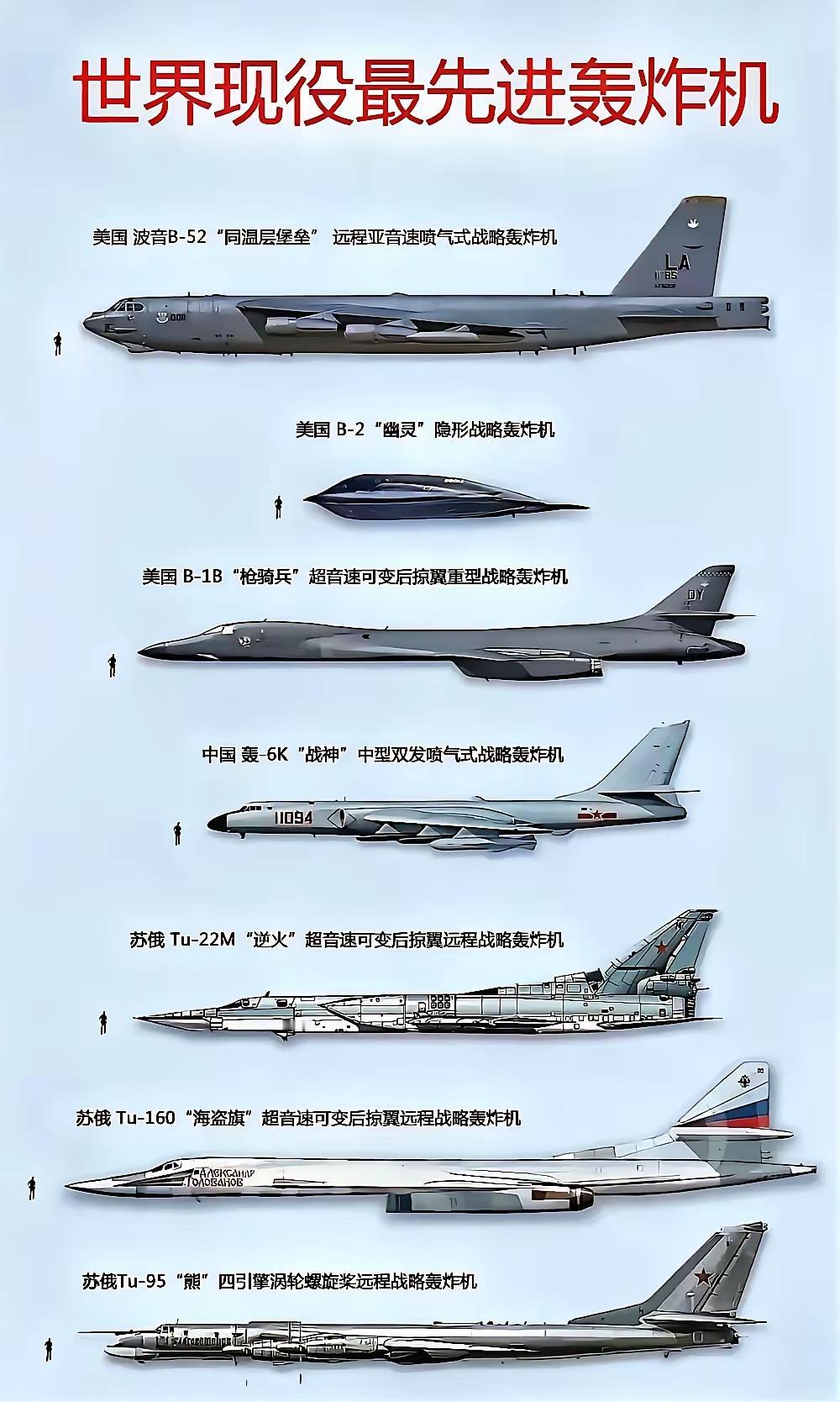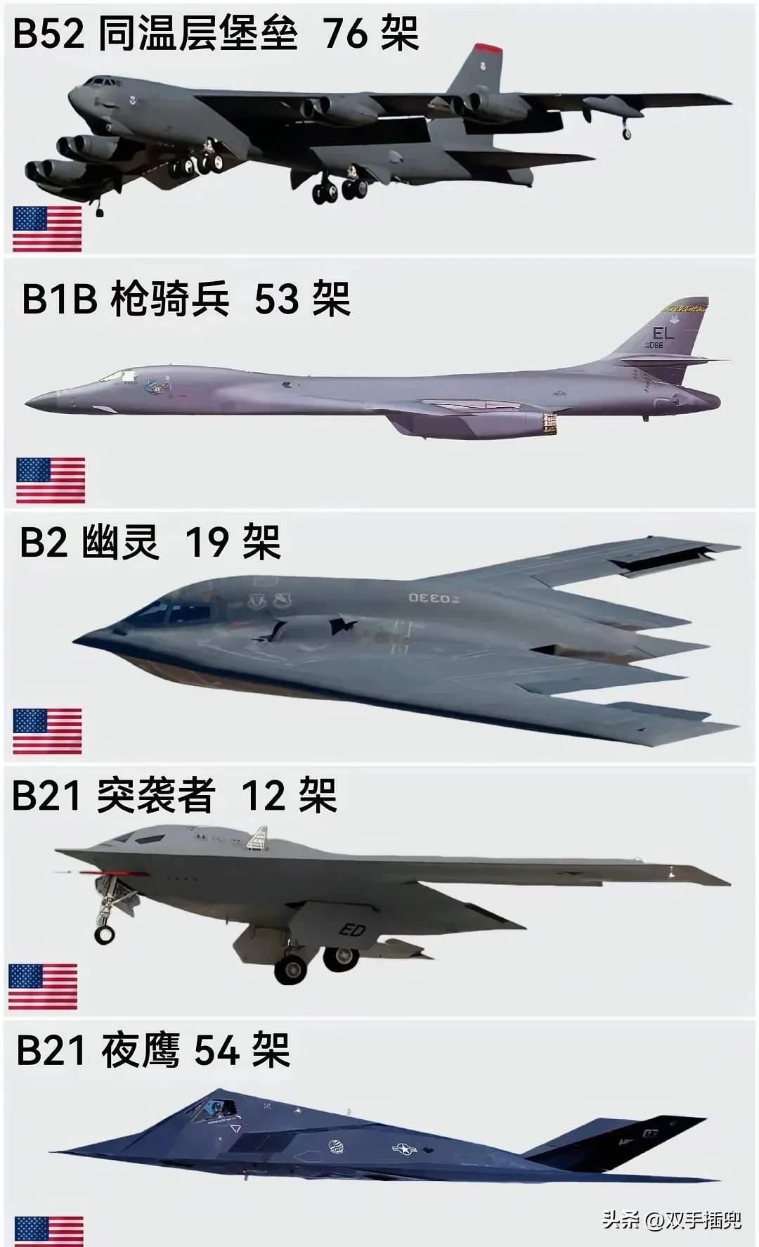 美国领先全球的战略轰炸机有多厉害?至今没有国家能与之匹敌。中国仍需努力。中美轰炸机对比 美军隐形轰炸机 轰炸机排名 美国战略轰炸机以体系化、全谱系、技术代差领先全球,现役B-52H/B-1B/B-2A形成“防区外打击+低空突防+隐身穿透”组合,加上新一代B-21,综合能力暂无国家能全面匹敌。 一、现役三型核心战力 B-52H“同温层堡垒”:1955年服役,计划用到2050年;最大航程约1.6万公里、最大载弹量31.8吨;可携核巡航导弹(AGM-86B)与常规炸弹,维护成本低、可靠性高,是核常威慑的“常青树”。 B-1B“枪骑兵”:1985年服役,可变后掠翼,最大速度1.25马赫、最大载弹量34吨(现役最大);RCS约1㎡(B-52的1/100),可超低空高速突防;能携84枚MK-82或24枚JASSM,兼顾核常与反舰,30分钟可切换核打击模式。 B-2A“幽灵”:1997年服役,全球唯一现役隐身战略轰炸机;飞翼布局,RCS约0.1㎡,可穿透先进防空网;最大航程1.1万公里,一次加油可达1.8万公里;内置弹仓可带16枚B61核弹或2枚GBU-57巨型钻地弹,3机编队可摧毁1个装甲师,但单机造价约24亿美元、维护极昂贵。 二、领先的关键优势 1. 全谱系突防能力:B-52H防区外远程打击、B-1B低空超音速突防、B-2A隐身穿透,覆盖不同烈度战场,无单一防空体系能通吃。 2. 全球打击+灵活部署:无加油航程普遍1.1万—1.6万公里,配合空中加油可24小时抵达全球;依托海外基地与快速转场,能快速形成区域威慑。 3. 核常一体+弹药兼容:均具备核打击能力,可携巡航导弹、精确制导炸弹、钻地弹、高超音速武器(升级中),任务弹性极强。 4. 技术代差显著:B-2A的隐身技术、B-1B的可变后掠翼与低空控制、B-52H的长寿命升级,其他国家同类机型在隐身、可靠性、体系适配等方面存在差距;俄罗斯图-160速度快但无隐身,图-95载重大但速度慢、突防弱 。 5. 下一代迭代快:B-21“突袭者”隐身与智能化更优,成本更低、可无人协同,2022年亮相,将进一步拉开代差。 三、与他国同类对比 俄罗斯:图-160载弹量40吨、速度2.05马赫,但RCS大、无隐身;图-95亚音速、突防弱,仅靠防区外导弹弥补 。 中国:轰-6系列经多轮升级,航程与载弹量提升,但无隐身、速度与航程仍逊于美制战略轰炸机,暂不具备全球隐身穿透能力。