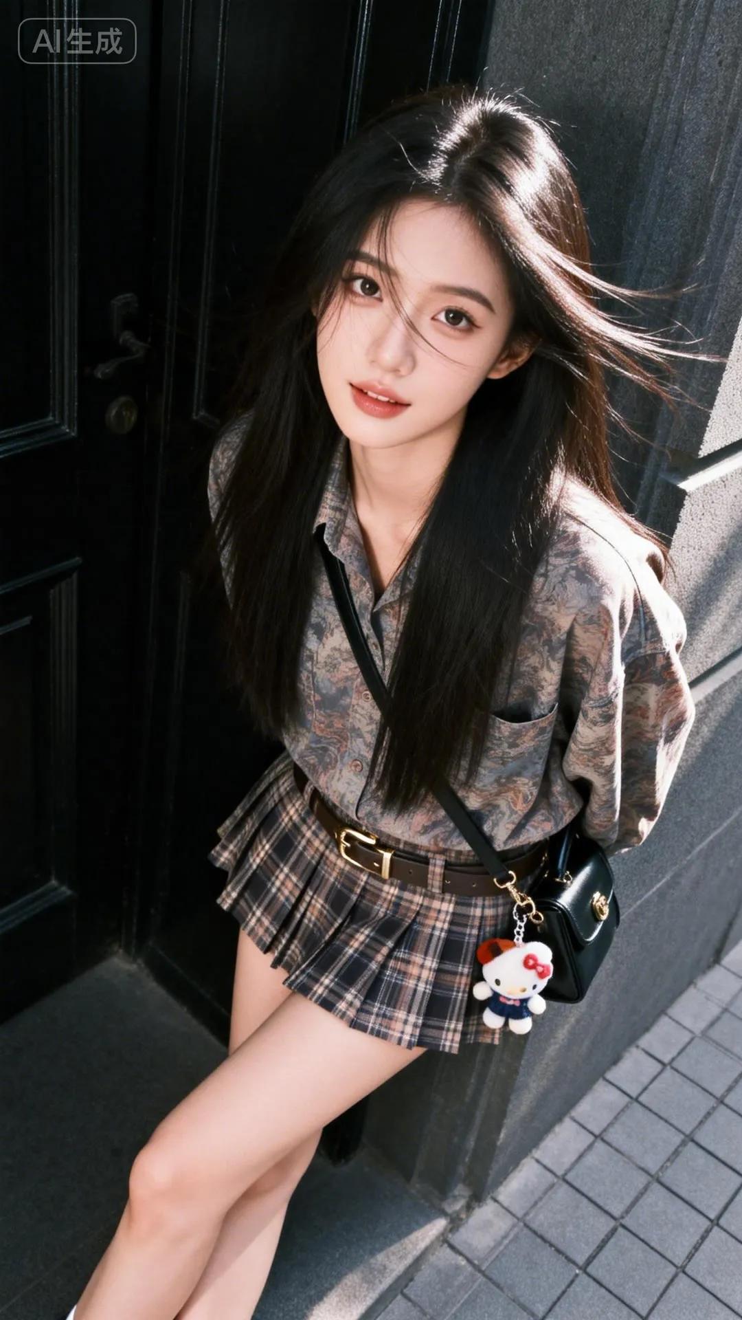 优雅紫裙,石墙映衬,古典与现代的完美融合。