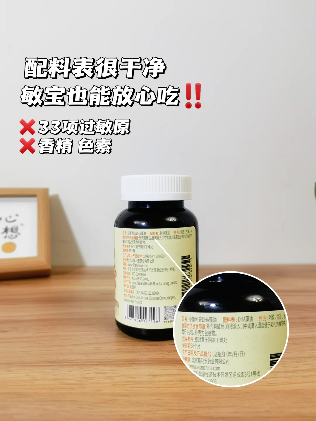 它的原料选自美国帝斯曼藻油,这属于藻油界顶流了,不介入海洋污染,不含常见的3⃣️3⃣️项过敏原,给孩子吃特别放心~
