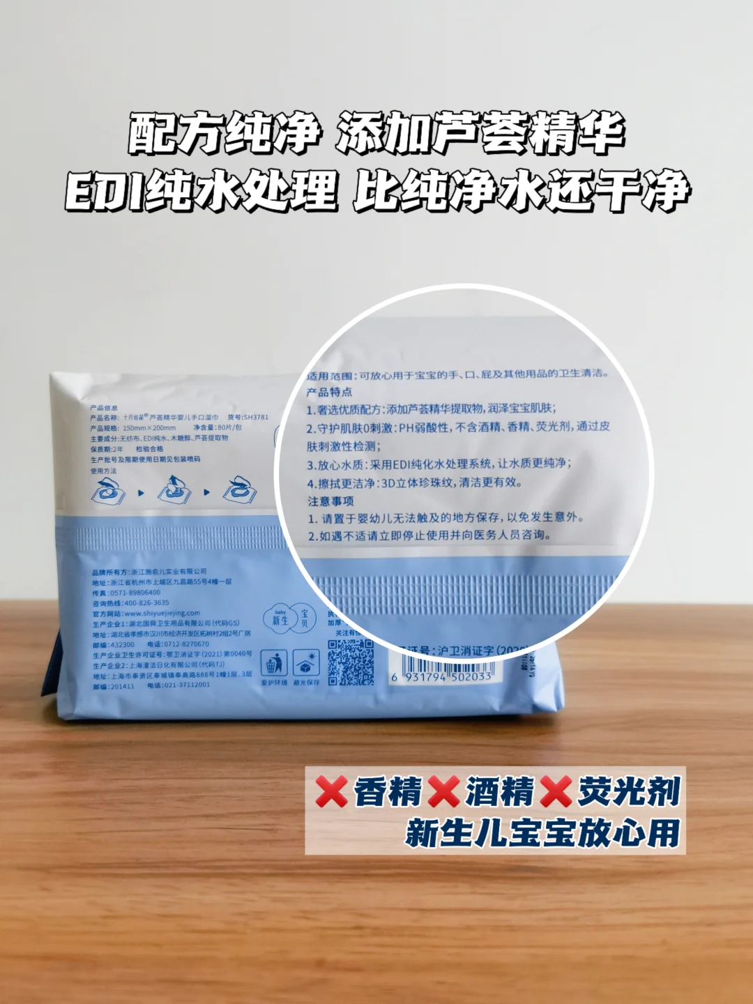 这才又重新做攻略,选了十月结晶芦荟精华湿巾,它使用的水是经过🔟重净化处理的EDI纯水,不含香精甲醛荧光剂什么乱七八糟的添加,不用担心会伤害到新生儿娇嫩肌肤~同时它含有天然芦荟🌱精华提取物,还能温和滋润皮肤哟~