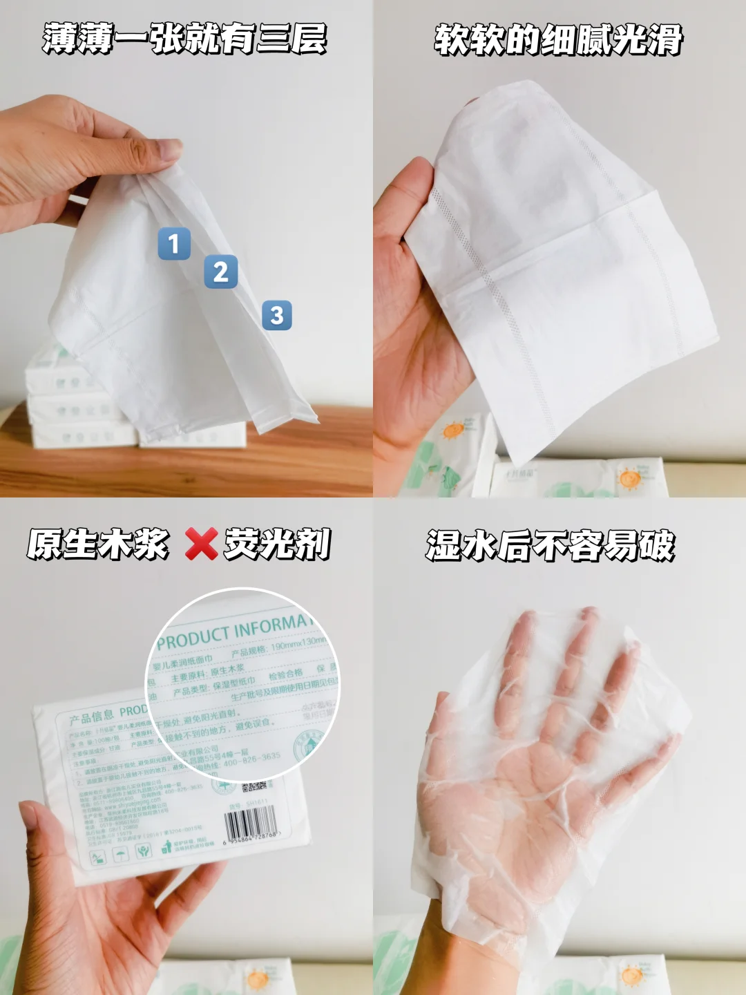 干湿两用,≈小孩的洗脸巾;吸水不会破,可以代替宝宝小毛巾,一次性使用