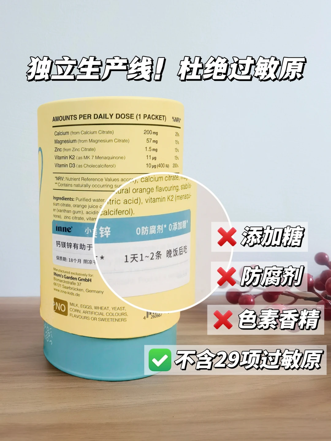 我家宝从1岁开始,每天都有在喝inne钙镁锌!它的钙源是超微柠檬酸钙,不需要依赖胃酸吸收,不会刺激宝宝肠胃~