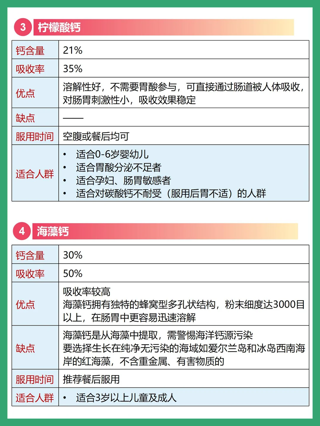 需多次服用,容易漏服或超量服用,适合对钙需求量较小的人群/吞咽困难者
