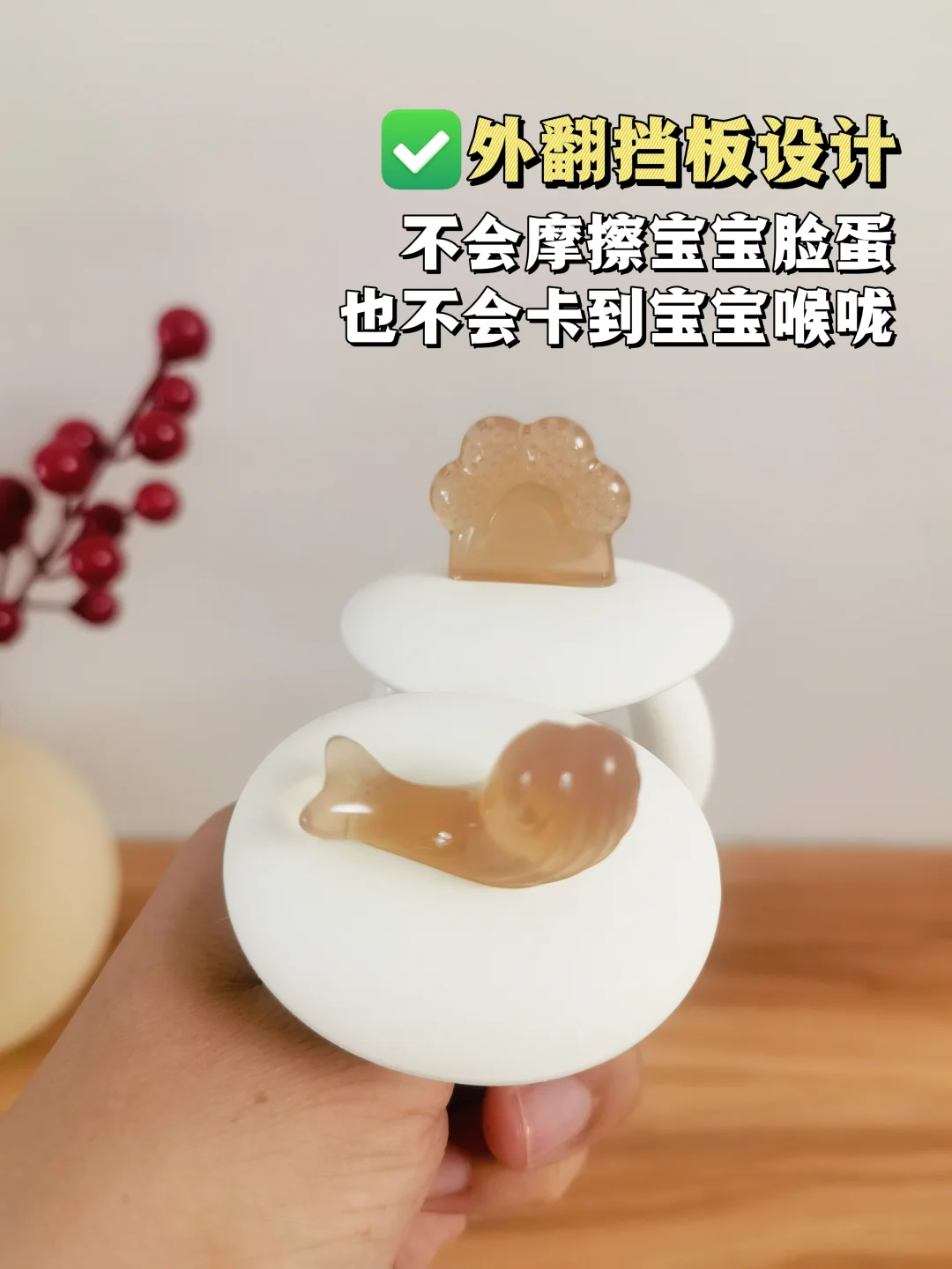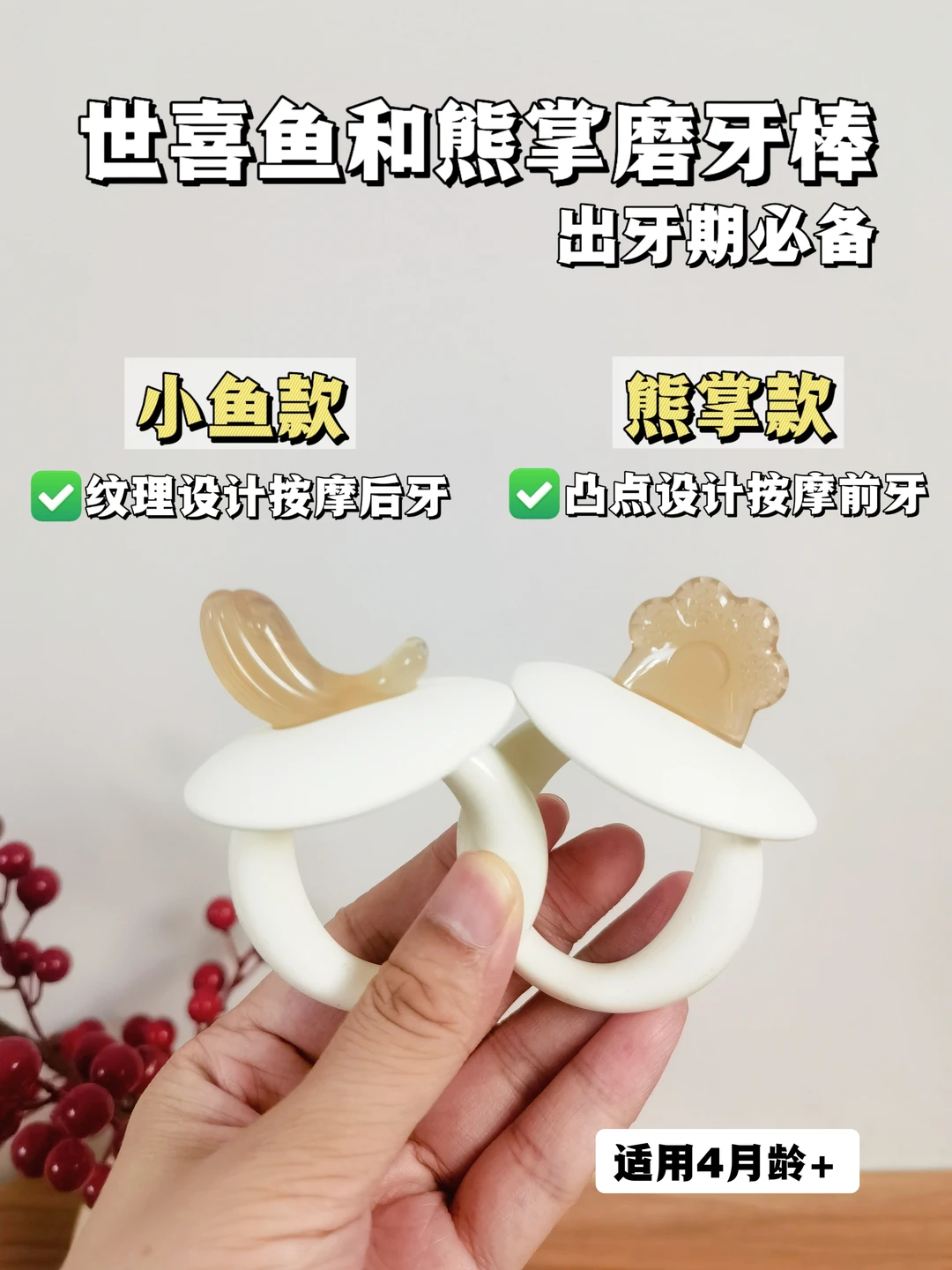 4⃣️月龄:这个阶段宝宝乳牙已经蓄势待发、准备萌出了~出牙期🦷牙龈难受,要选择有凸点纹理、能够磨合牙床的牙胶。